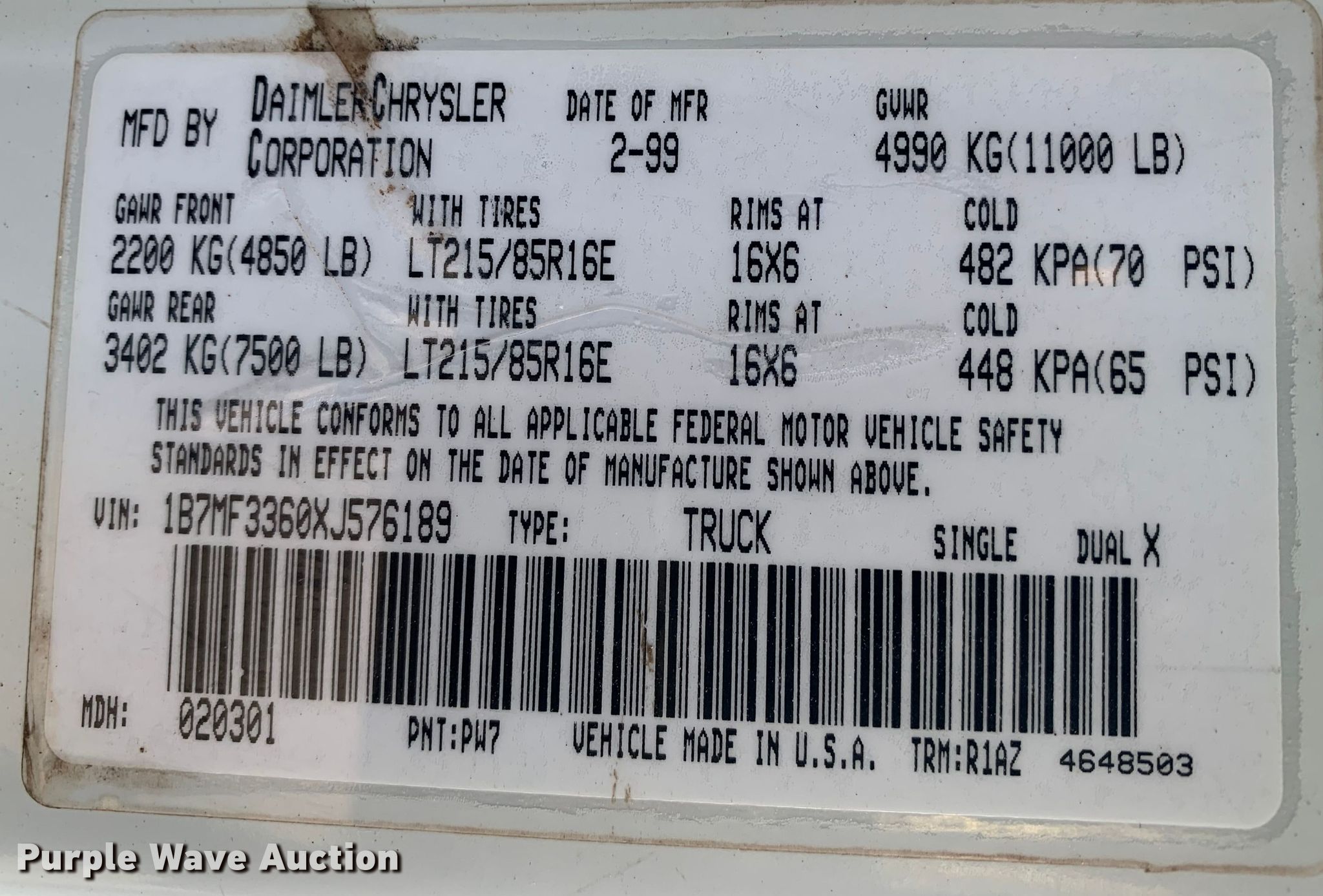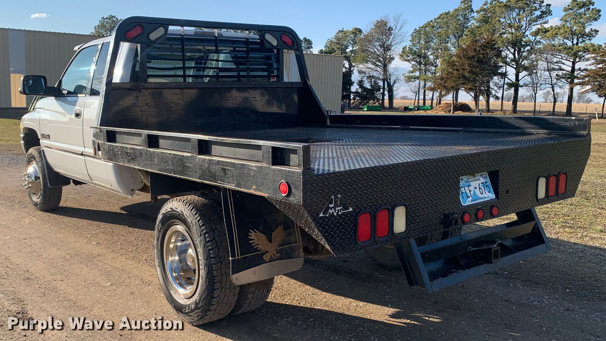 Purple Wave is selling a used 3/4 or 1 Ton Pickup or Van in Oklahoma. This item is a 1999 Dodge Ram 3500 Quad Cab flatbed pickup truck with the following: Miles: 193,008 on odometer, VIN: 1B7MF3360XJ576189
