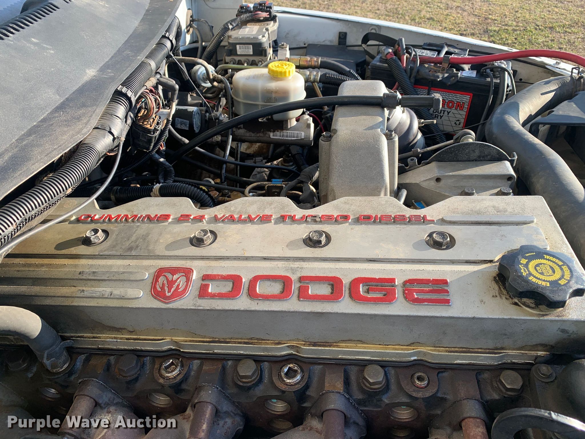 1999 Dodge Ram 3500 Quad Cab flatbed pickup truck. Miles: 193,008 on odometer, VIN: 1B7MF3360XJ576189. Engine Displacement: 5.9L L6 OHV, Cylinders: 6, Fuel type: Diesel. Transmission Automatic, Four wheel drive. Interior AC, Heat, Seat: Power driver, Heated mirrors, Power windows, Power locks, Cruise control. Features Flatbed JI, 8' 6" L x 8' 2" W, Hitch: Gooseneck. Tires Size: LT235/85R16. Notes Dash warning indicator: ABS, Brake. Oklahoma title. Title distribution may be delayed up to 14 days from verification of funds. Adair, OK 74330