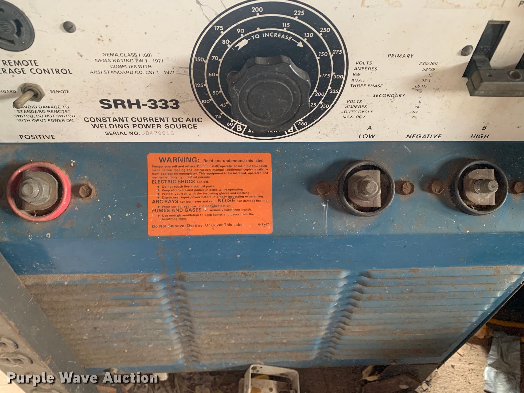 Purple Wave is selling a used Welder (Manual) in Texas. This item is a Miller SRH-333 welder with the following: Serial: JB479916