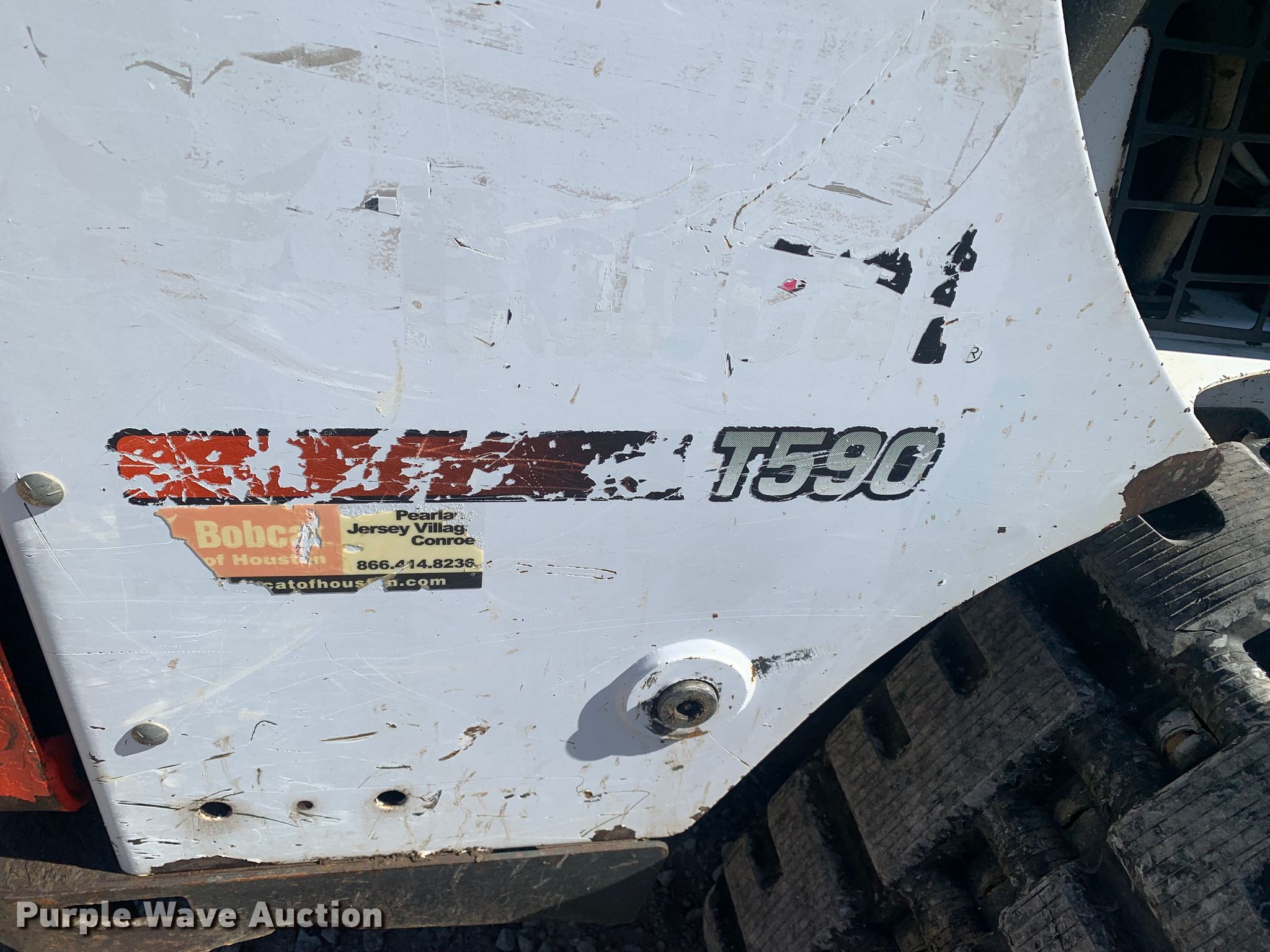 Purple Wave is selling a used Tracked Skid Steer Loader in Oklahoma. This item is a 2015 Bobcat T590 tracked skid steer loader with the following: Hours: 4,569 on meter, Serial: ALJU15083