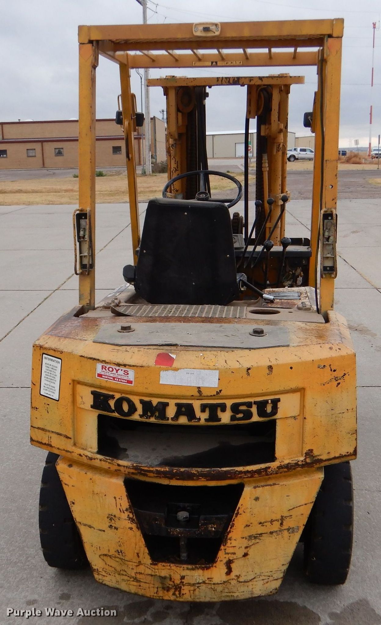 Take a look at this used Komatsu FG25C-8 forklift being sold on March 15th, 2023 in the SOLD! March 15 Vehicles and Equipment Auction made by Komatsu. Take a look at all of the item information below or take a look at similar auctions for Cushion Tire or Pneumatic Forklift.