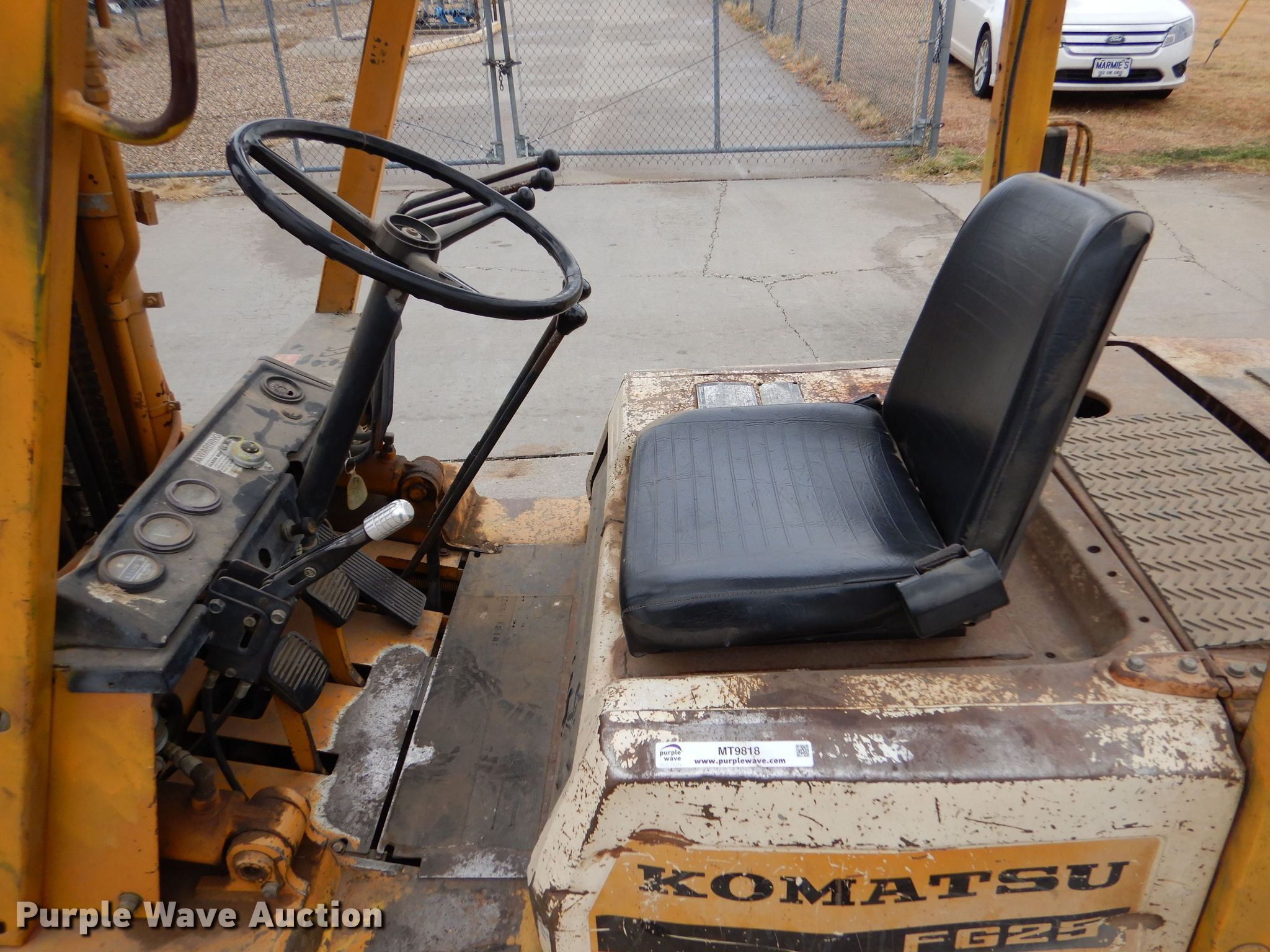 Purple Wave is selling a used Cushion Tire or Pneumatic Forklift in Kansas. This item is a Komatsu FG25C-8 forklift with the following: Hours: 15,714 on meter