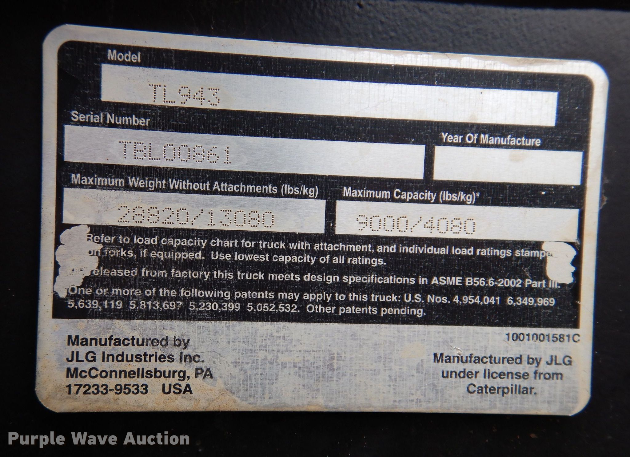 Purple Wave is selling a used Telehandler in Iowa. This item is a 2007 Caterpillar TL943 telehandler with the following: Hours: 4,744 on meter, Serial: TBL00861