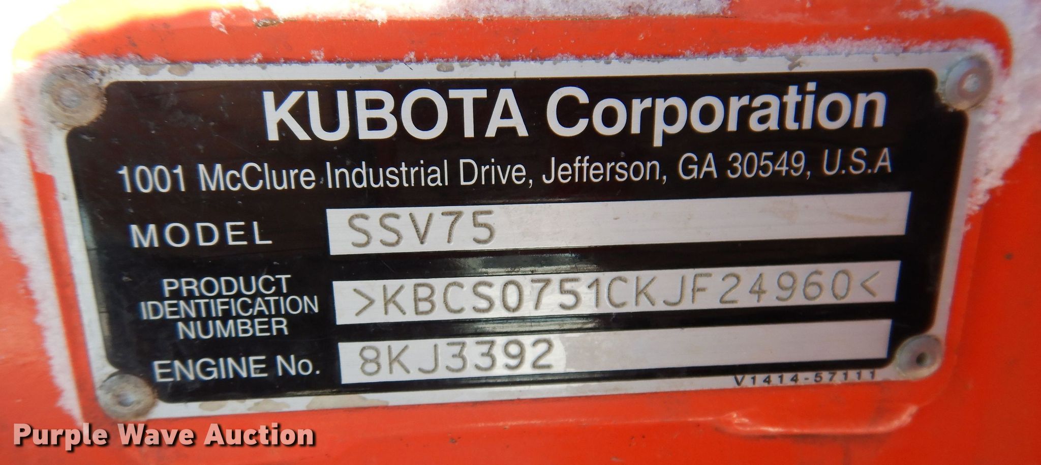 Purple Wave is selling a used Skid Steer Loader in Iowa. This item is a 2019 Kubota SSV75 skid steer loader with the following: Hours: 893 on meter, Serial: KBCS0751CKJF24960