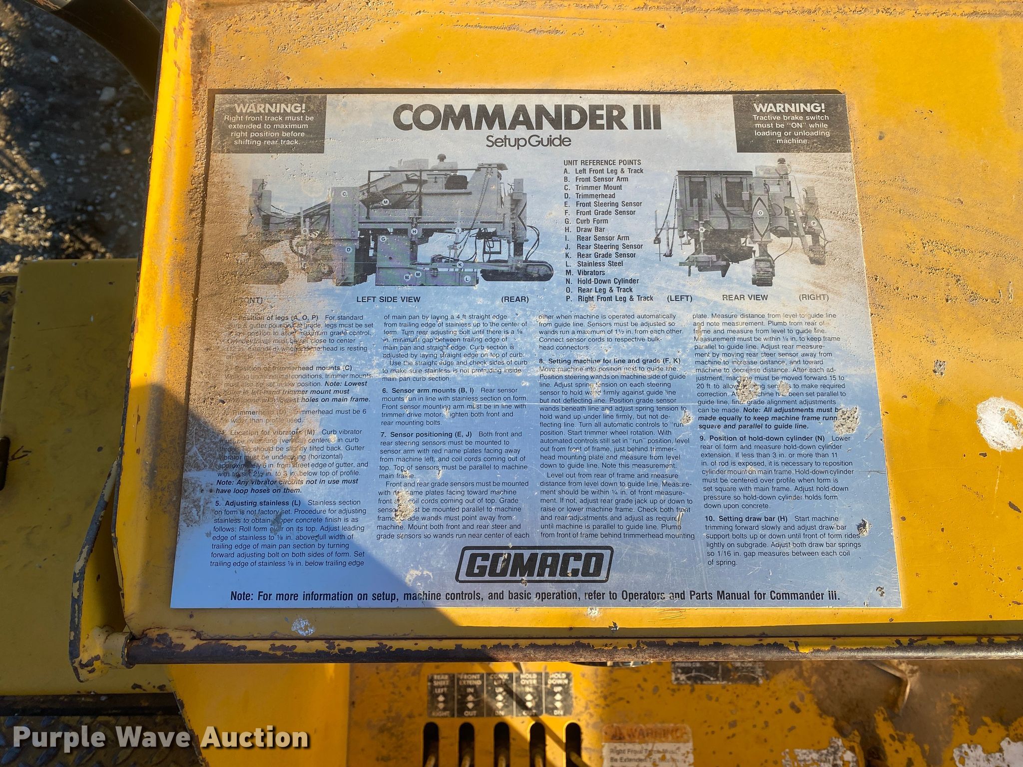 Purple Wave is selling a used Concrete Paver or Curb Machine in Oklahoma. This item is a Gomaco Commander III GT6300 slip form paver with the following: Hours: 1,393 on meter