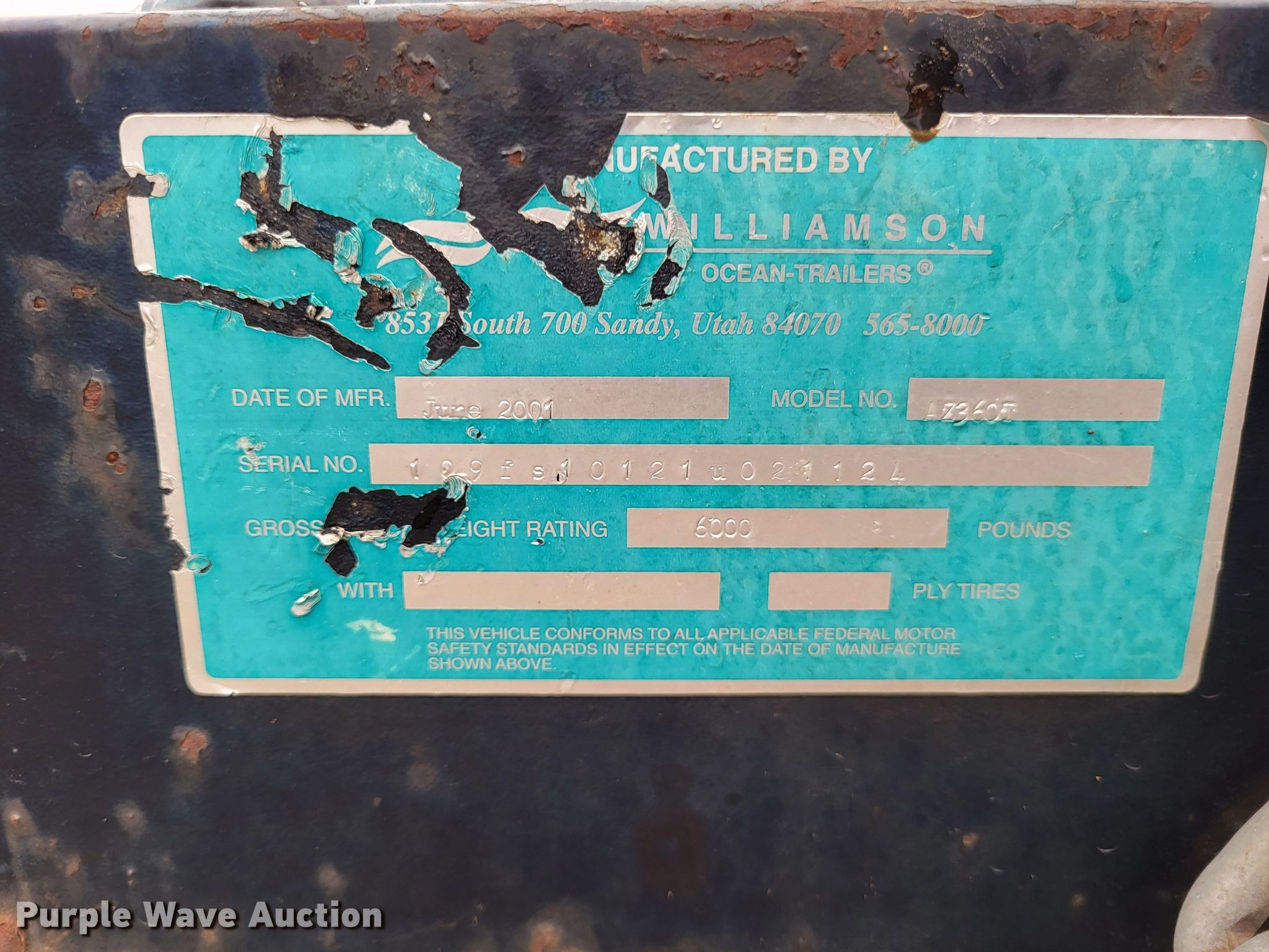 Asphalt Zipper AZ360 planer. Hours: 70 on meter, Serial: 100794. Engine John Deere 4045TF, Displacement: 4.5L, Fuel type: Diesel, kW: 93. Features Cutting head Width: 36", Diameter: 30", Teeth, Carbide, Ground controls. Notes Additional roller, Additional teeth. 2001 Williamson Ocean AZ360T trailer VIN: 109FS10121U021124. Dimensions Overall: 10' 8" L x 8' W. Chassis Ball hitch: 2 5/16", Landing gear: Single, Suspension: Spring, Brakes: Electric, GVWR: 6,000 lbs. Tires Steel wheels, Size: 9.50R16.5LT. Missouri title. Title distribution may be delayed up to 14 days from verification of funds. JML Inc.. 3019 Wayne Avenue. Poplar Bluff, MO 63901