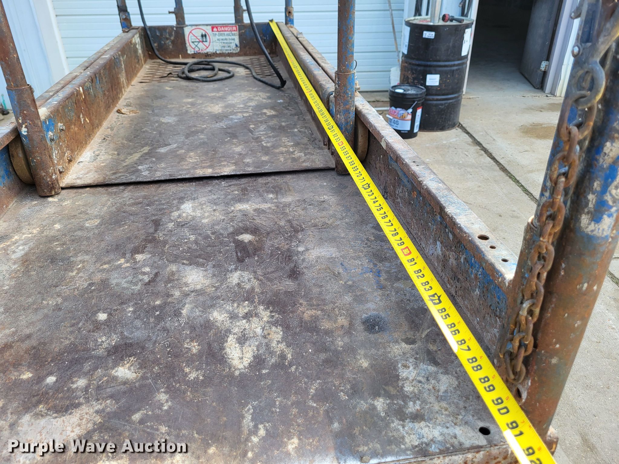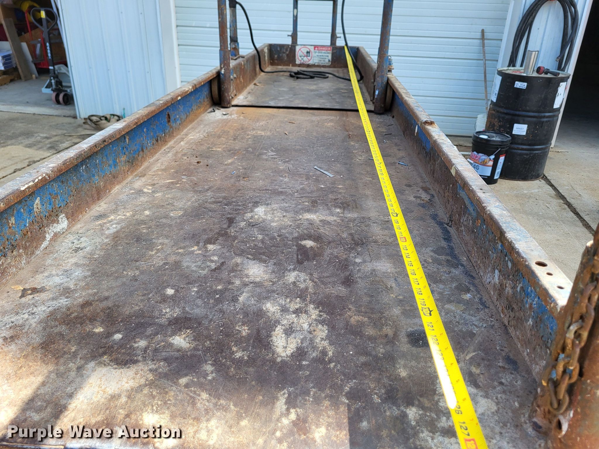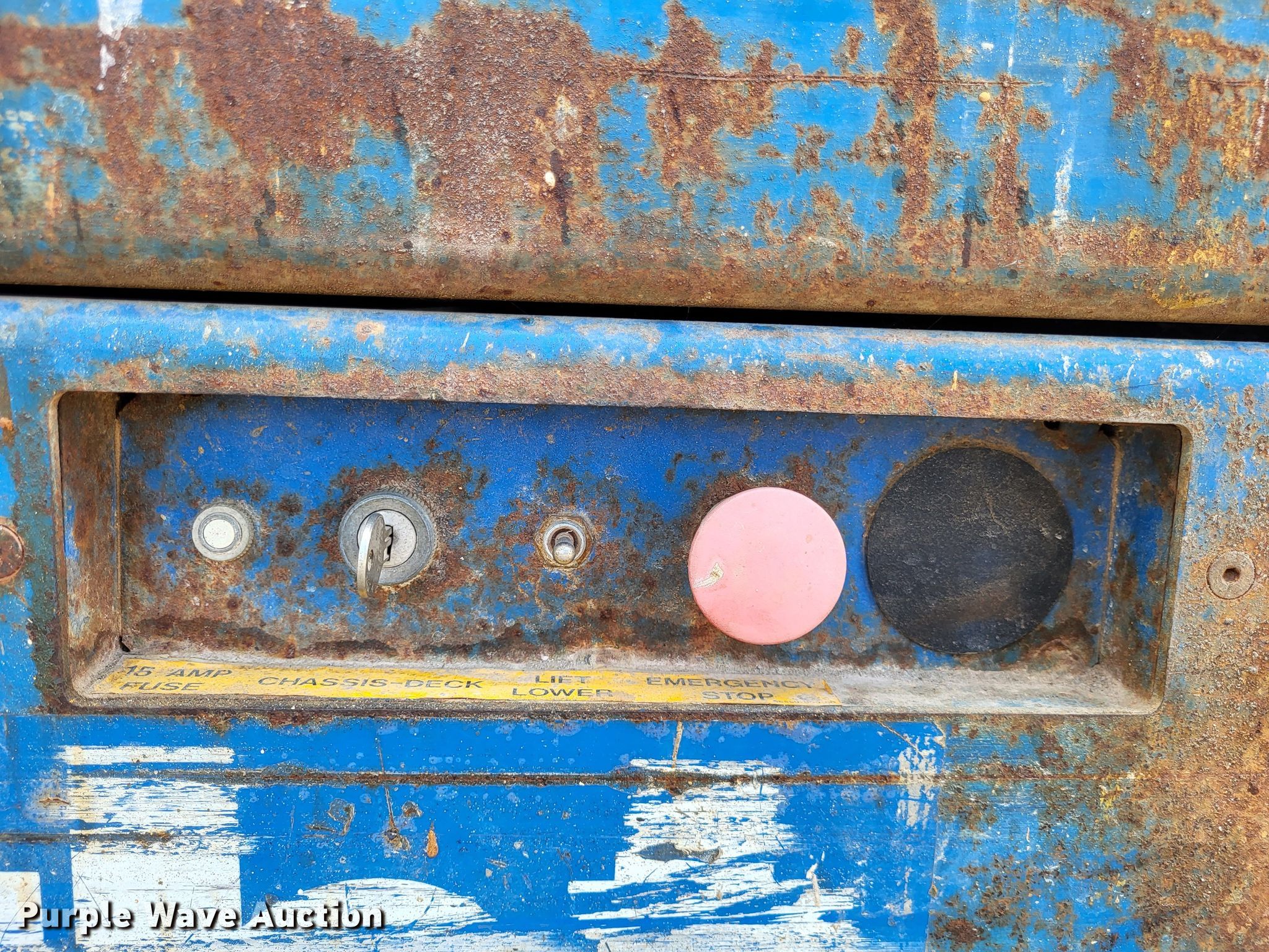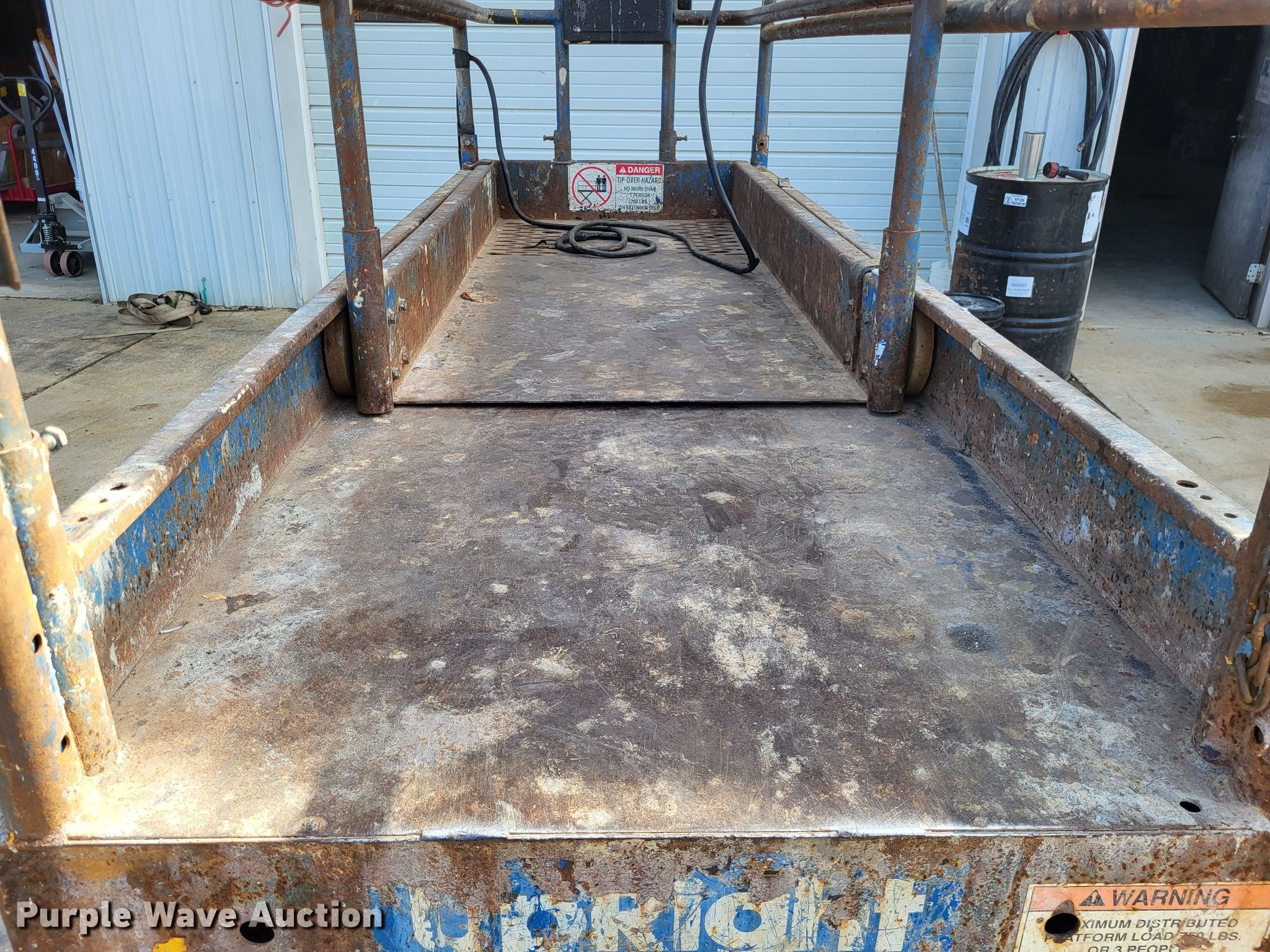 Up Right 66000-000 scissor lift. Serial: 3346, Unit #: 8883346. Electric Motor Ohio Motor D-468214XWF07A, Volts: 24. Features Maximum lift capacity: 750 lbs, Maximum lift height: 20', Platform: 128" L x 32" W, Platform extensions: Manual. Tires Tire size: 15x5, Solid, Non-marking. JML Inc.. 3019 Wayne Avenue. Poplar Bluff, MO 63901