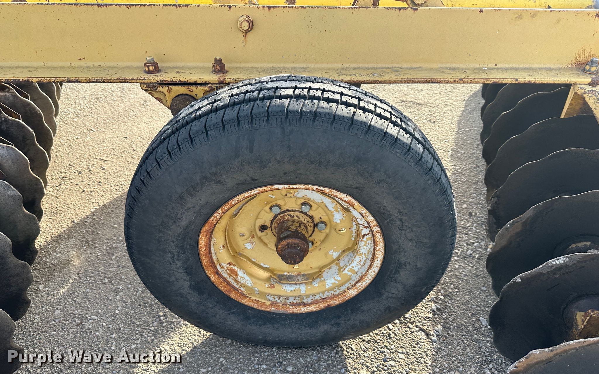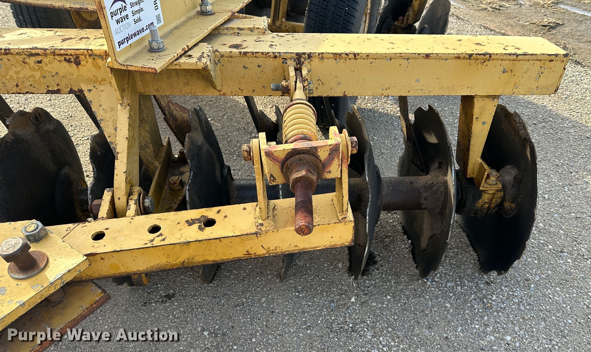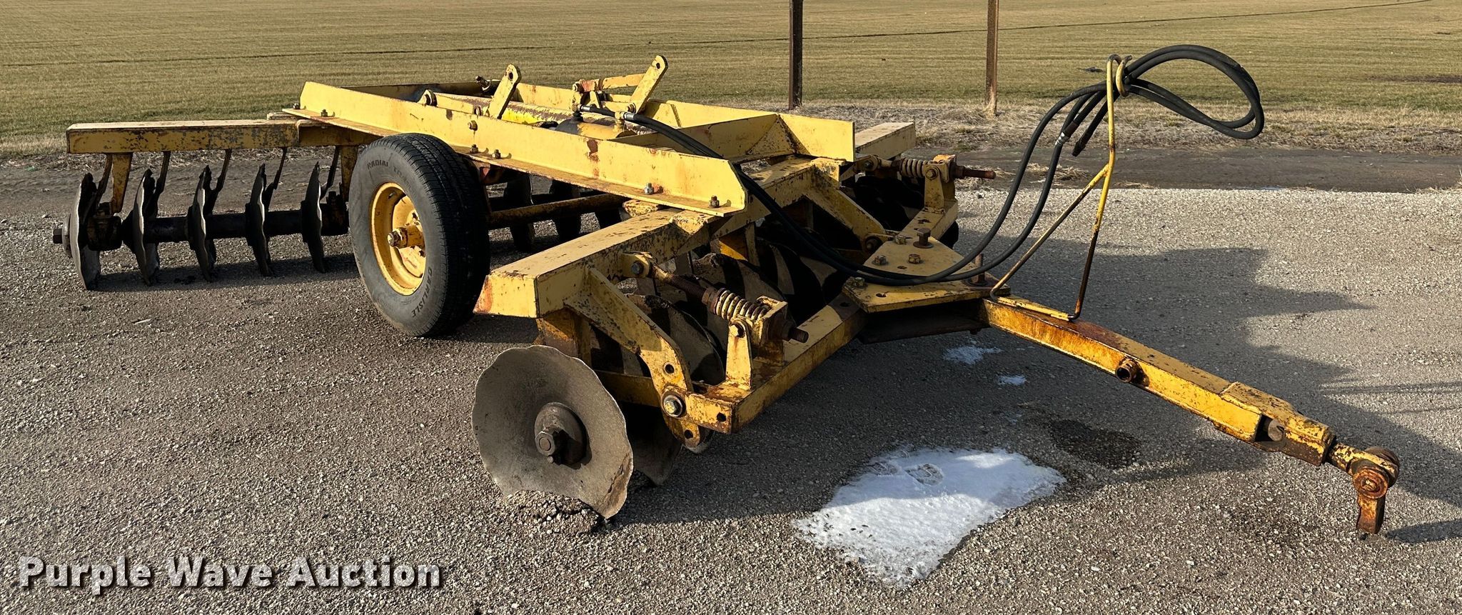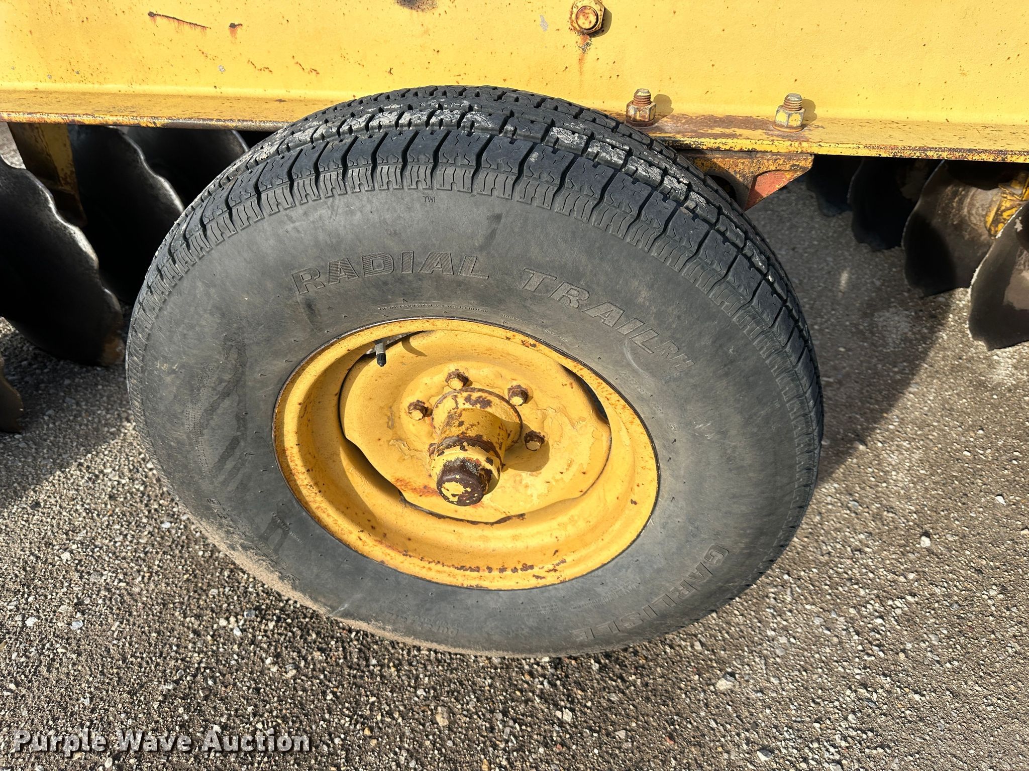 Disk. Overall width: 9'. Features Front blades Diameter: 26", Spacing: 10", Rear blades Diameter: 22", Spacing: 10", Disk scrapers, Operation Hydraulic lift. Tires Tire size: 235/85R16. 1783 E 1500 Rd. Lawrence, KS 66044