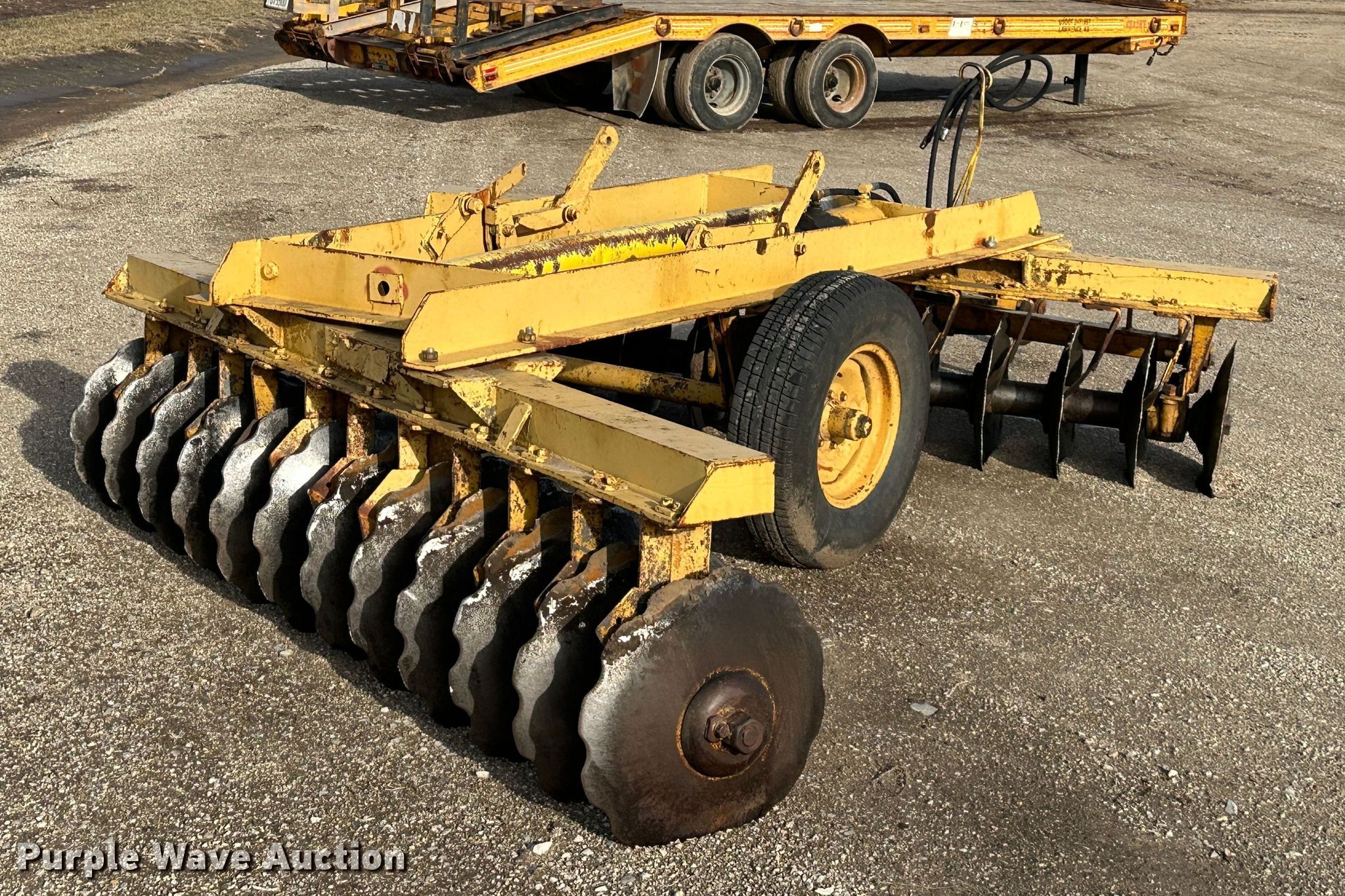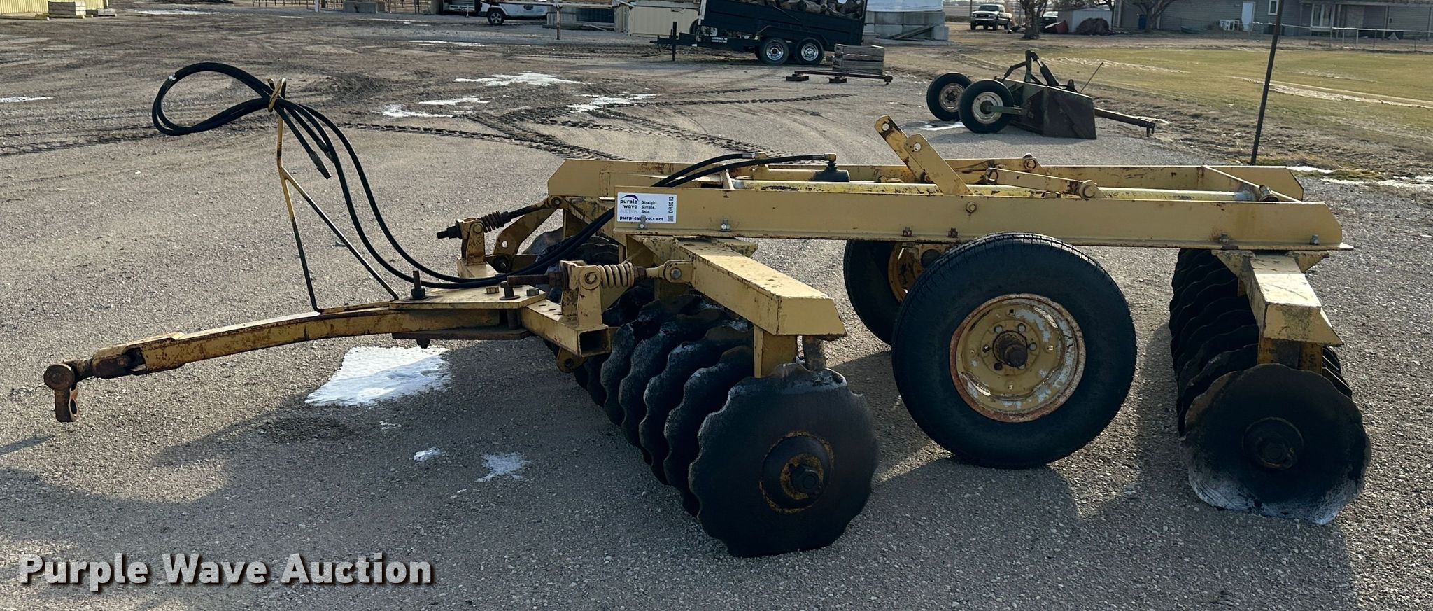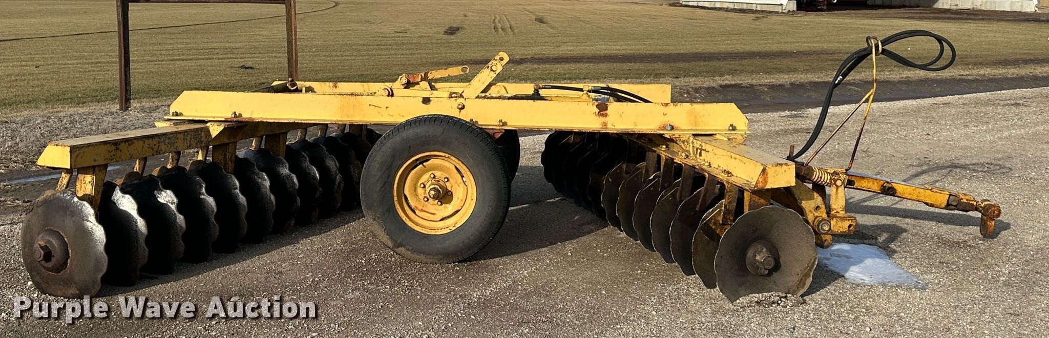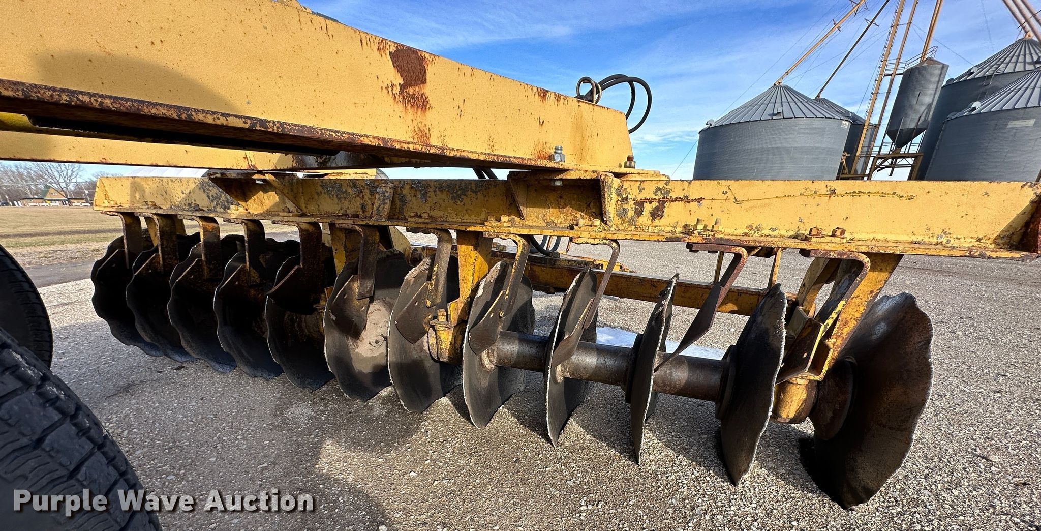 Disk. Overall width: 9'. Features Front blades Diameter: 26", Spacing: 10", Rear blades Diameter: 22", Spacing: 10", Disk scrapers, Operation Hydraulic lift. Tires Tire size: 235/85R16. 1783 E 1500 Rd. Lawrence, KS 66044