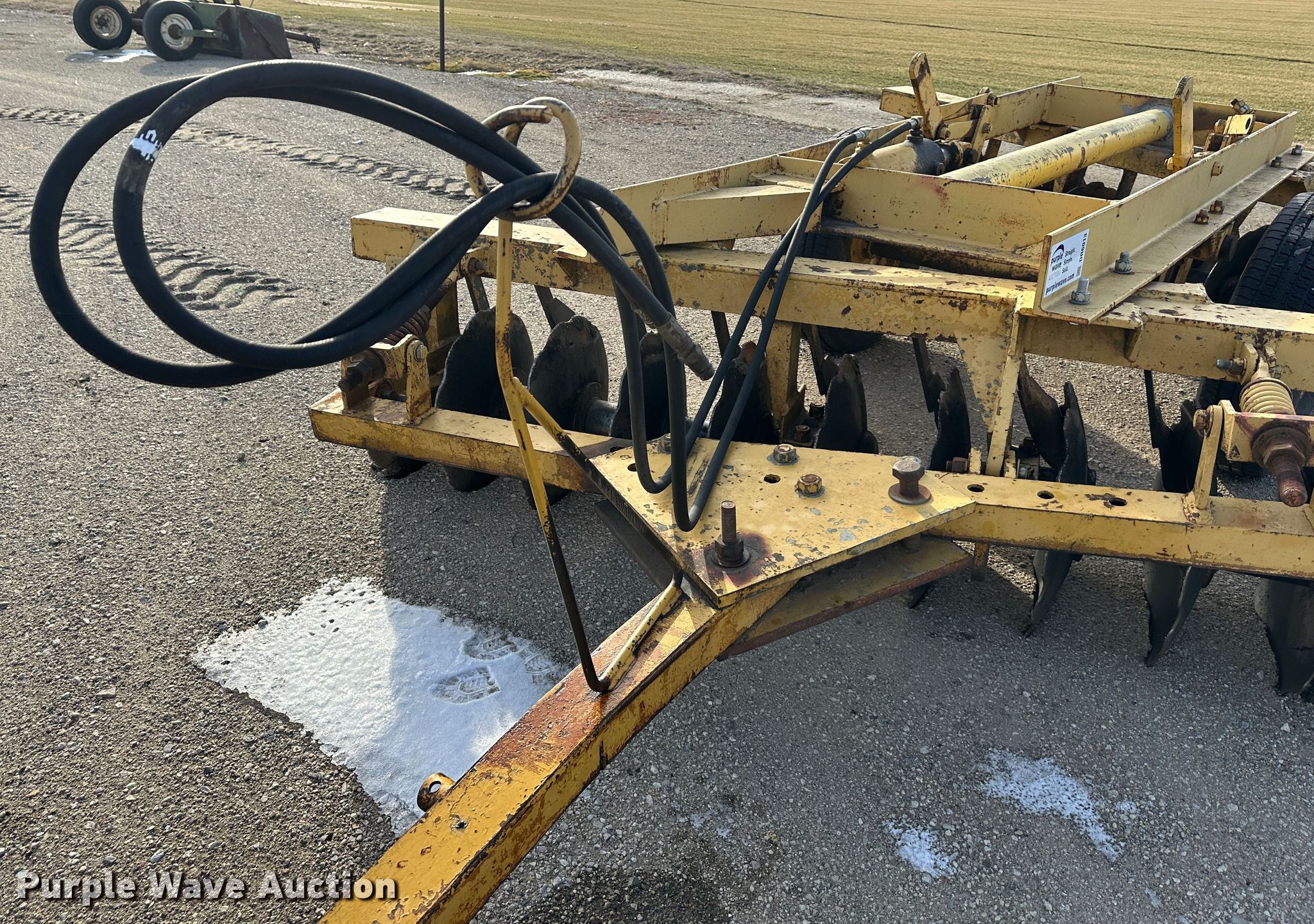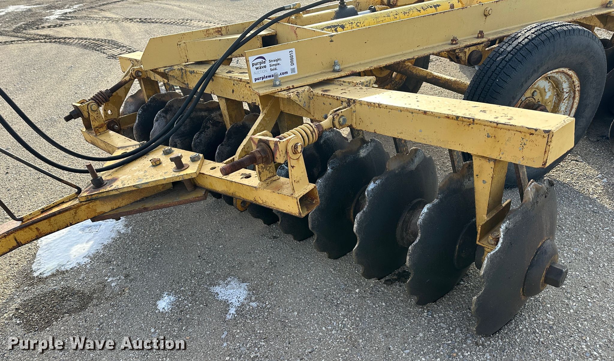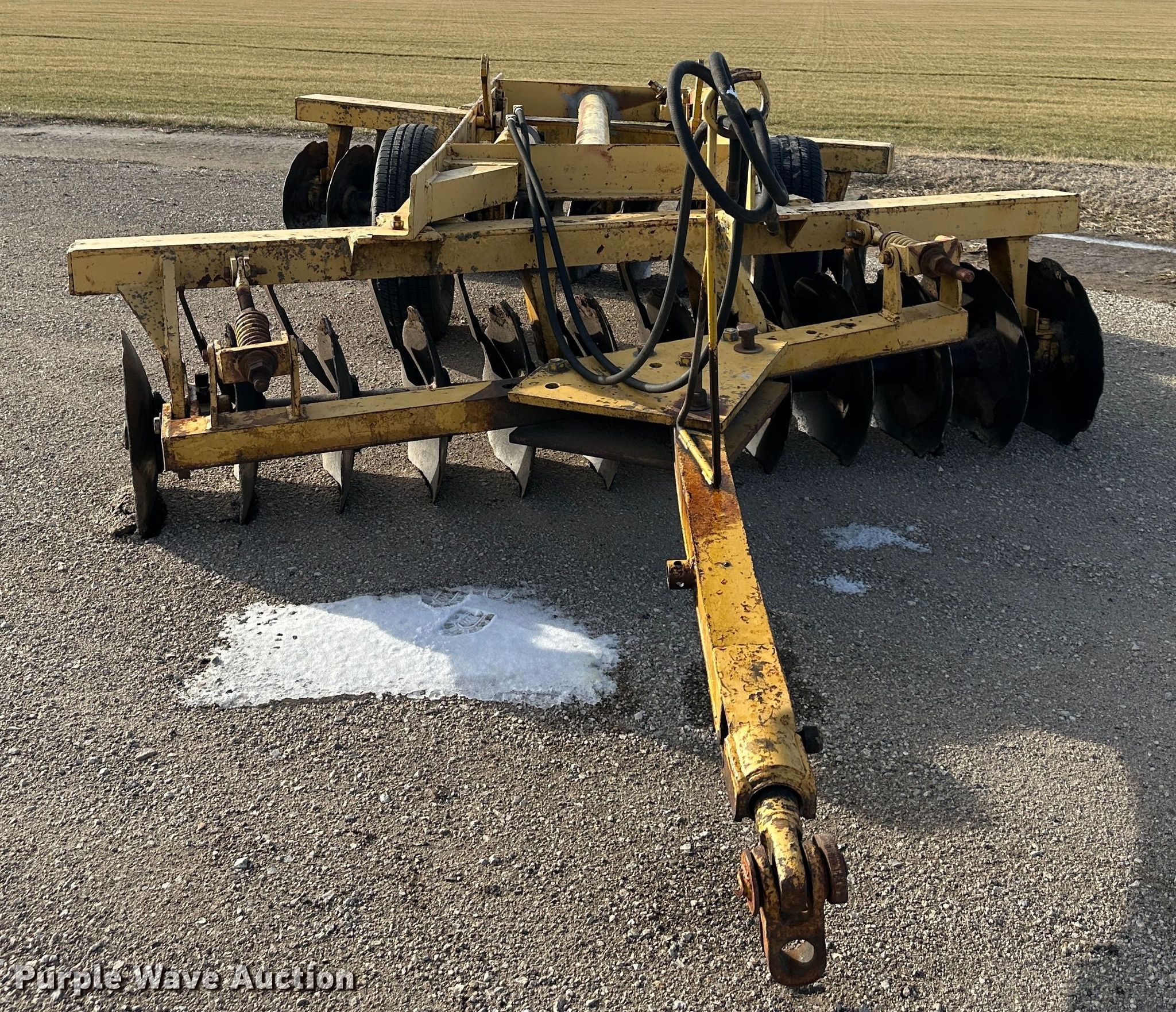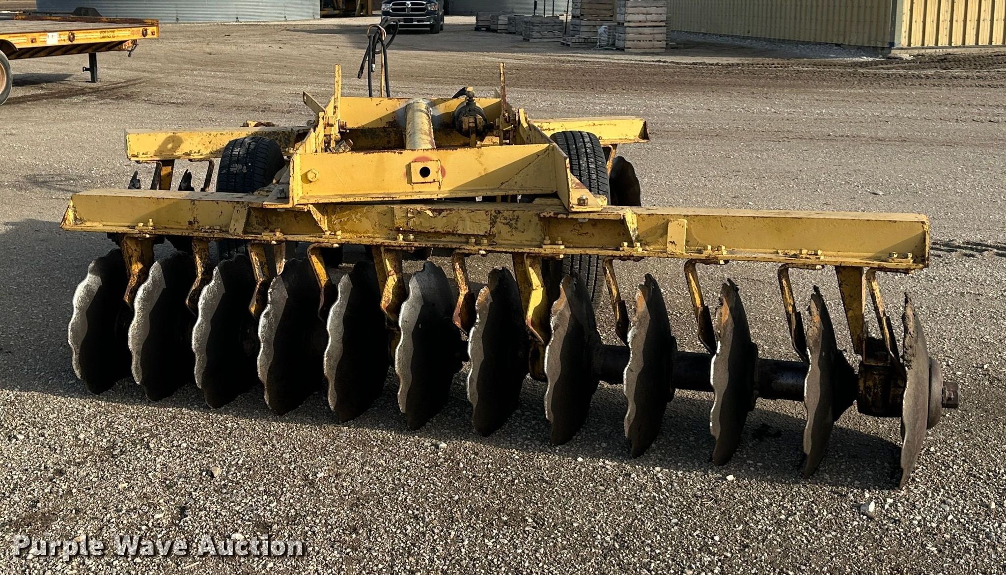 Disk. Overall width: 9'. Features Front blades Diameter: 26", Spacing: 10", Rear blades Diameter: 22", Spacing: 10", Disk scrapers, Operation Hydraulic lift. Tires Tire size: 235/85R16. 1783 E 1500 Rd. Lawrence, KS 66044