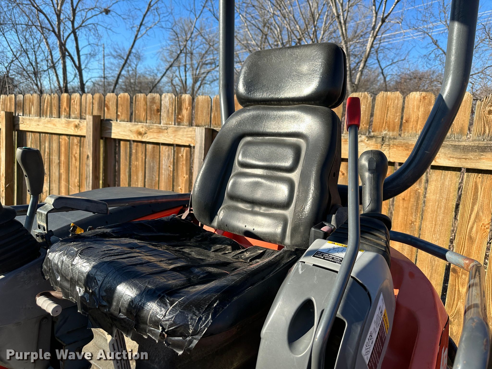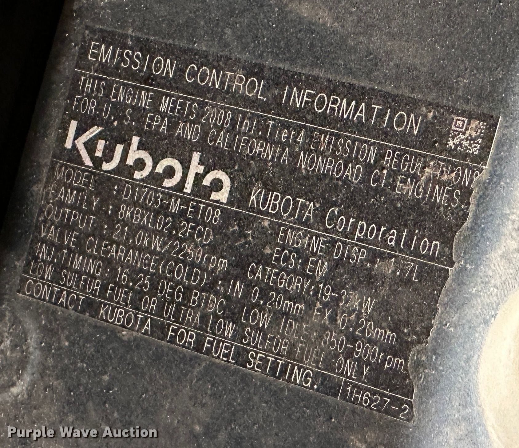 Kubota KX91-3 mini excavator. Hours: 112 on meter. Engine Kubota, Cylinders: 3, Fuel type: Diesel. Transmission Hydrostatic. Operators station OROPS, Pattern changer. Features Auxiliary hydraulics Standard, One-way, Backfill blade Width: 61", Boom Swing, Stick Stick length: 62", Bucket Kubota , Width: 12", Cutting edge: Weld-on, Teeth: 3. Tracks Width: 12", Rubber. Notes Engine issues , Non-operational unit. Sunflower Rental. 3301 W 6th St. Lawrence, KS 66049