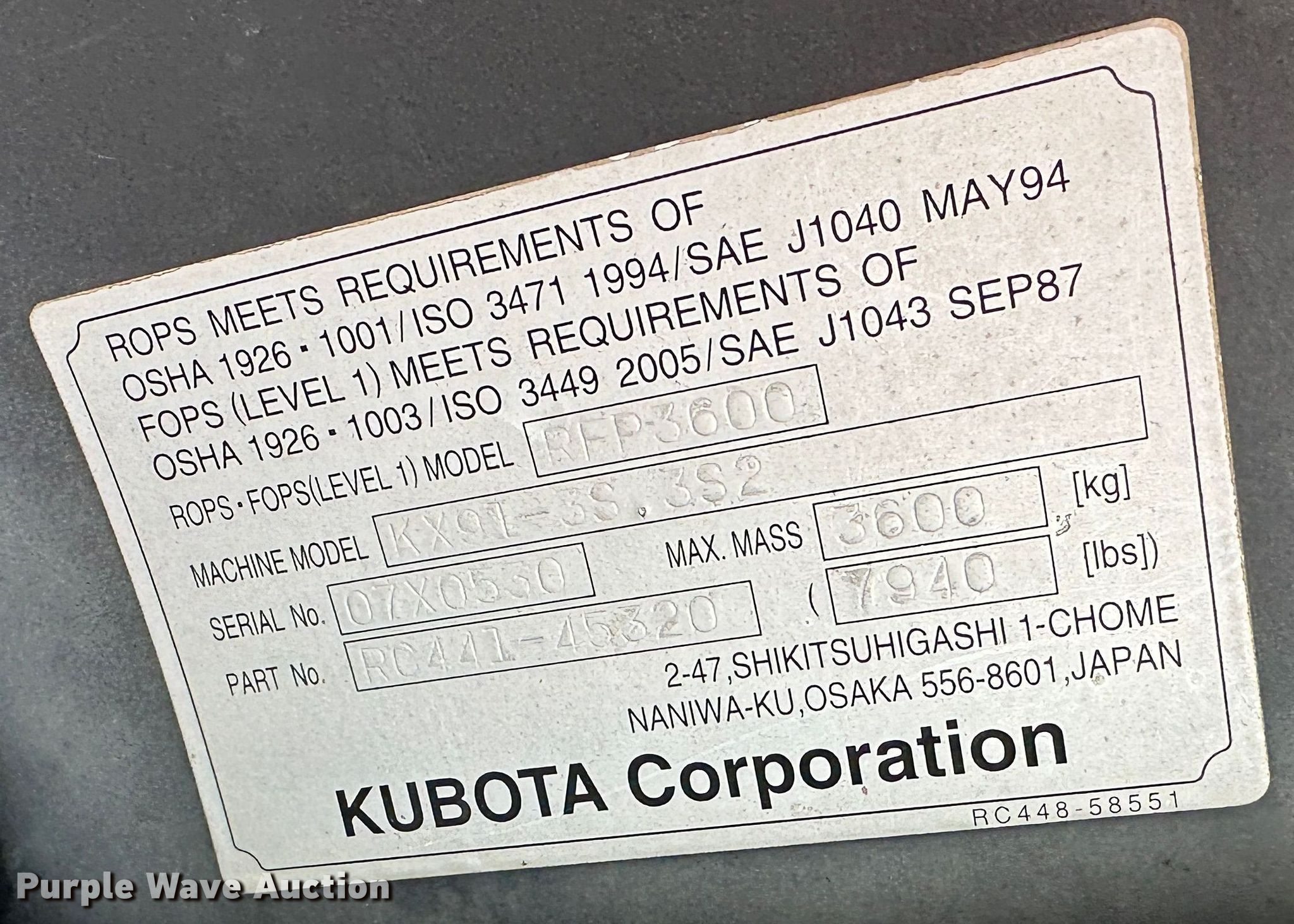 Purple Wave is selling a used Mini Excavator in Kansas. This item is a Kubota KX91-3 mini excavator with the following: Hours: 112 on meter