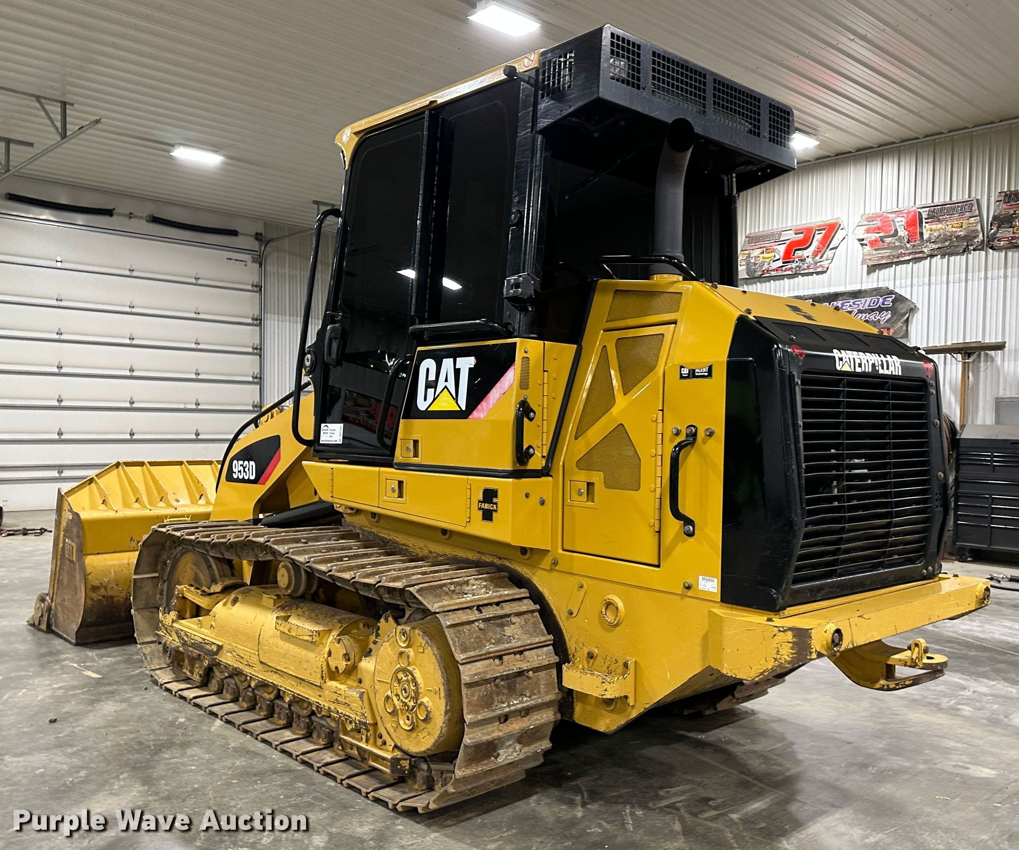 2016 Caterpillar 953D track loader. Hours: 7,645 on meter, Serial: CAT0953DJLBP02038. Engine Caterpillar C6.6, Cylinders: 6, Fuel type: Diesel. Transmission Hydrostatic, Two speed travel. Operators station Enclosed cab, AC, Heat, Bucket controls: Two-lever. Features Bucket Width: 94". Tracks Width: 18.5", Grouser pads: Double. Shaw Excavating and Grading. 7043 SW State Hwy O. Trimble, MO 64492