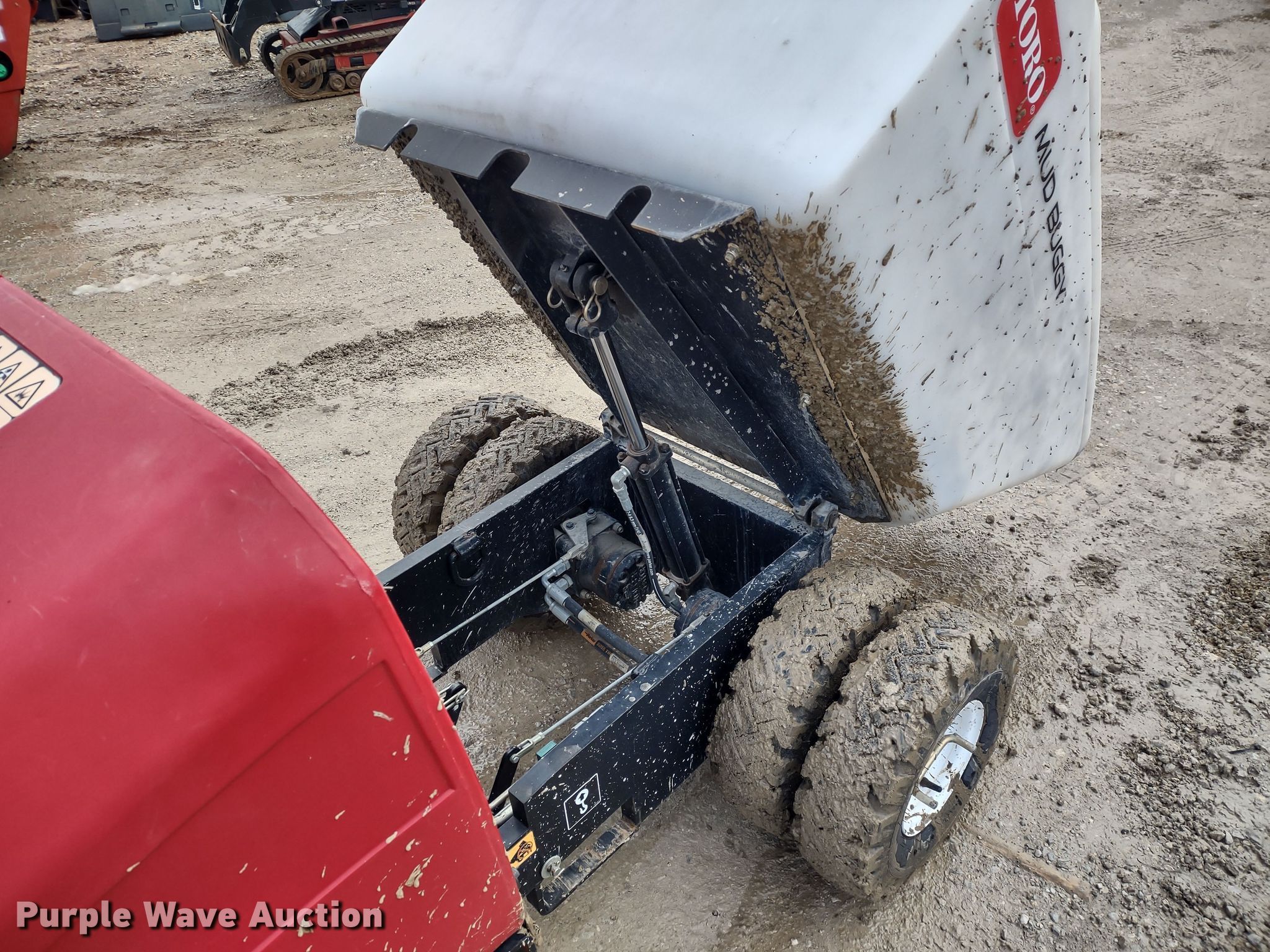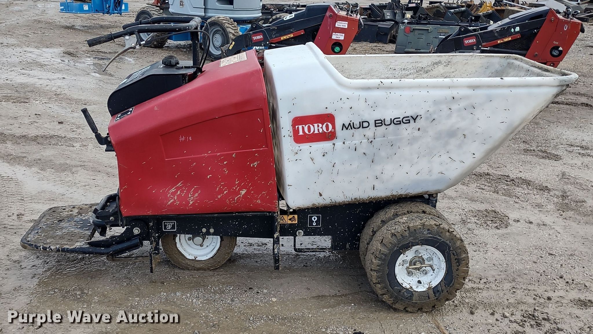 Toro Mud Buggy concrete buggy. Serial: 400387500. Engine Honda, Cylinders: 1, Fuel type: Gas. Transmission Hydrostatic. Features Hydraulic dump. Tires Front: 5.70-8, Rear: 4.80/4.00. Gerken Rent-All. 31600 Old KC Rd. Paola, KS 66071