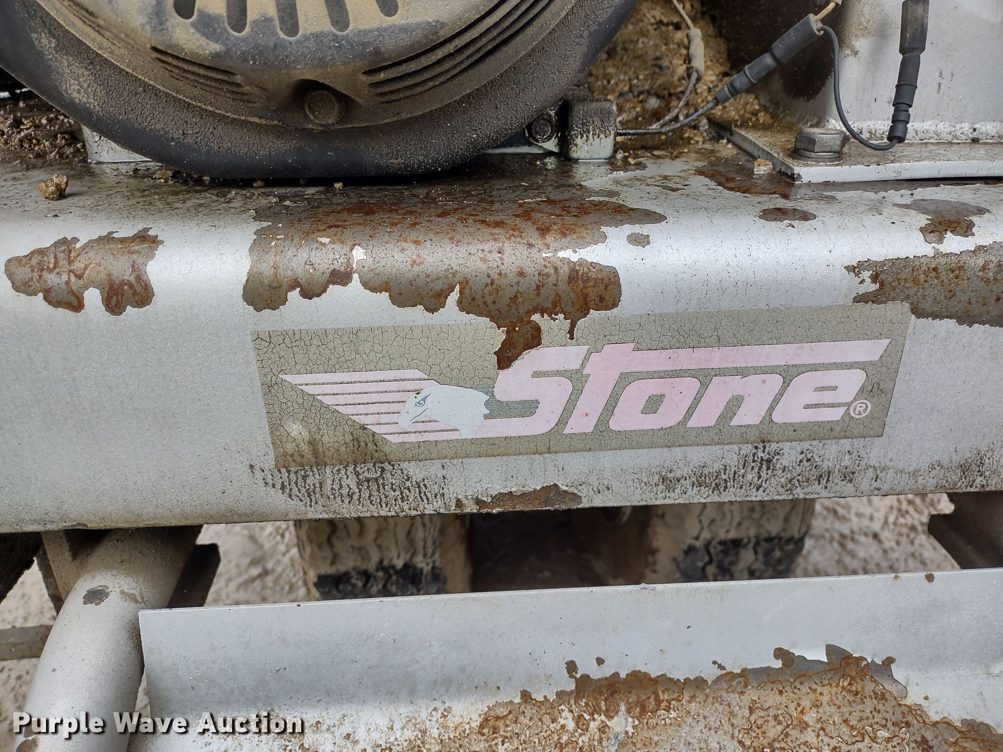 Stone SB1600 concrete buggy. Serial: 302010082. Engine Honda GX390, Displacement: 389 cc, Cylinders: 1, Fuel type: Gas. Transmission Hydrostatic. Operators station Hydraulic dump. Tires Front: 5.70-8, Rear: 4.80/4.00. Gerken Rent-All. 31600 Old KC Rd. Paola, KS 66071