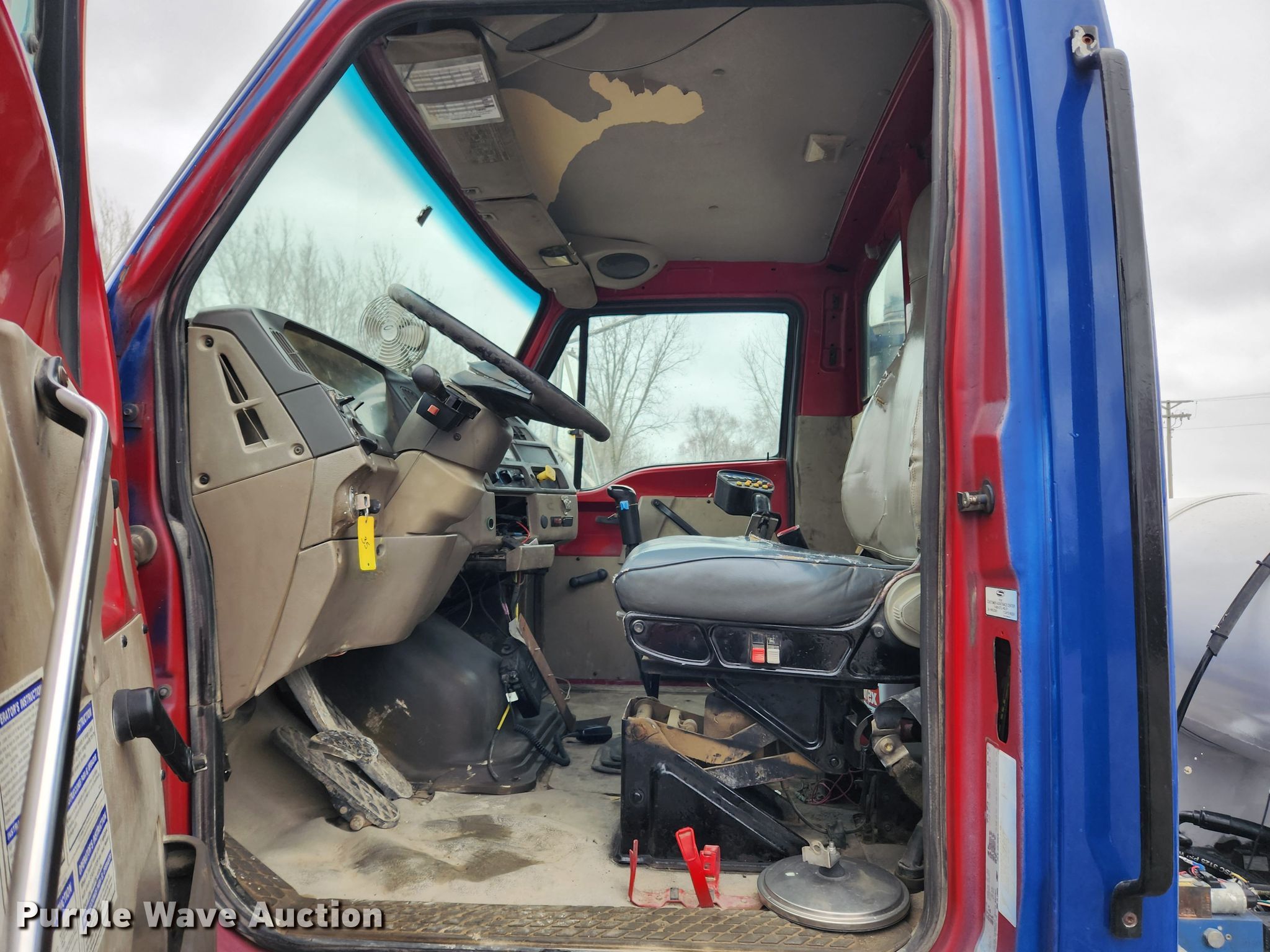 2000 Sterling L9500 ready mix truck. Miles: 221,704 on odometer, VIN: 2FZNEMCB1YAH43400. Engine Cummins ISM, Displacement: 10.8L, Cylinders: 6, Fuel type: Diesel, HP: 280. Transmission Eaton Fuller Roadranger RTO-9 MLL, Manual, Speed: 11. Chassis Axles: Triple, Tag axle, Differential lock: Full, Suspension: Spring over walking beam, Brakes: Air, PTO, GVWR: 63,000 lbs FAWR: 20,000 lbs, IAWR: 23,000 lbs, RAWR: 23,000 lbs. Interior Heat, Cruise control. Features Mixer TMMB, Capacity: 11 cu.yd., Discharge: Rear, In-cab controls, Rear drum controls, Water tank capacity: 150 gallons, Chute Extensions: 3, Chute type: Steel.. Tires Front: 425/65R22.5, Rear: 11R22.5, Lift axle: 11R22.5. Notes Dash warning indicator: Engine warning, Windshield chipped or cracked. Illinois title. Title distribution may be delayed up to 14 days from verification of funds. All American Ready Mix. 2510 Richards Ln. Springfield, IL 62702
