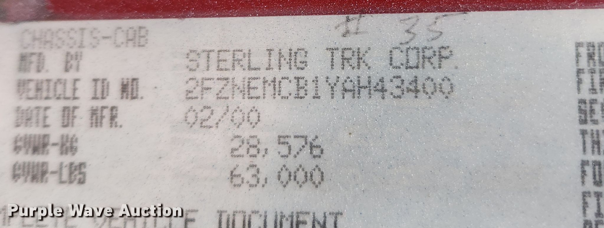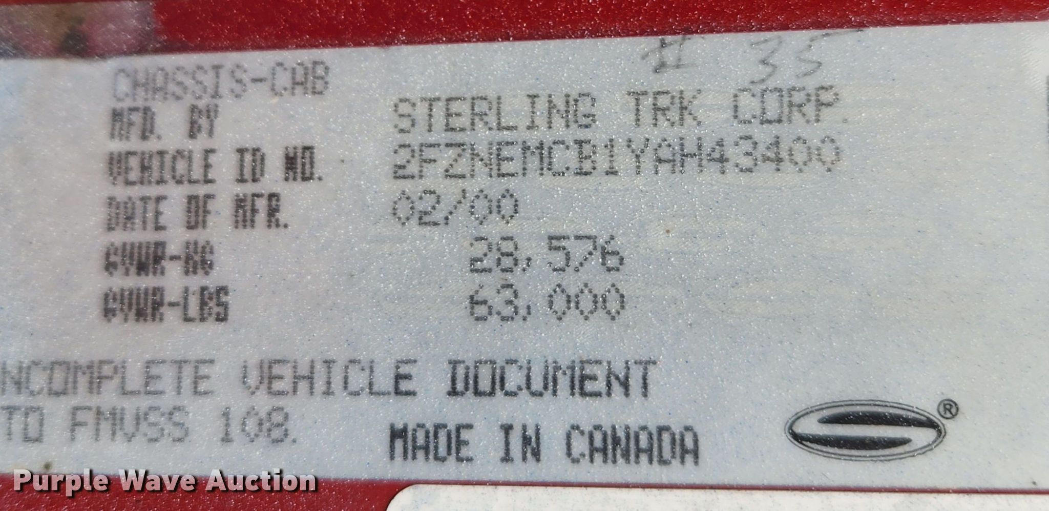 Purple Wave is selling a used Ready Mix or Pump Truck in Illinois. This item is a 2000 Sterling L9500 ready mix truck with the following: Miles: 221,704 on odometer, VIN: 2FZNEMCB1YAH43400