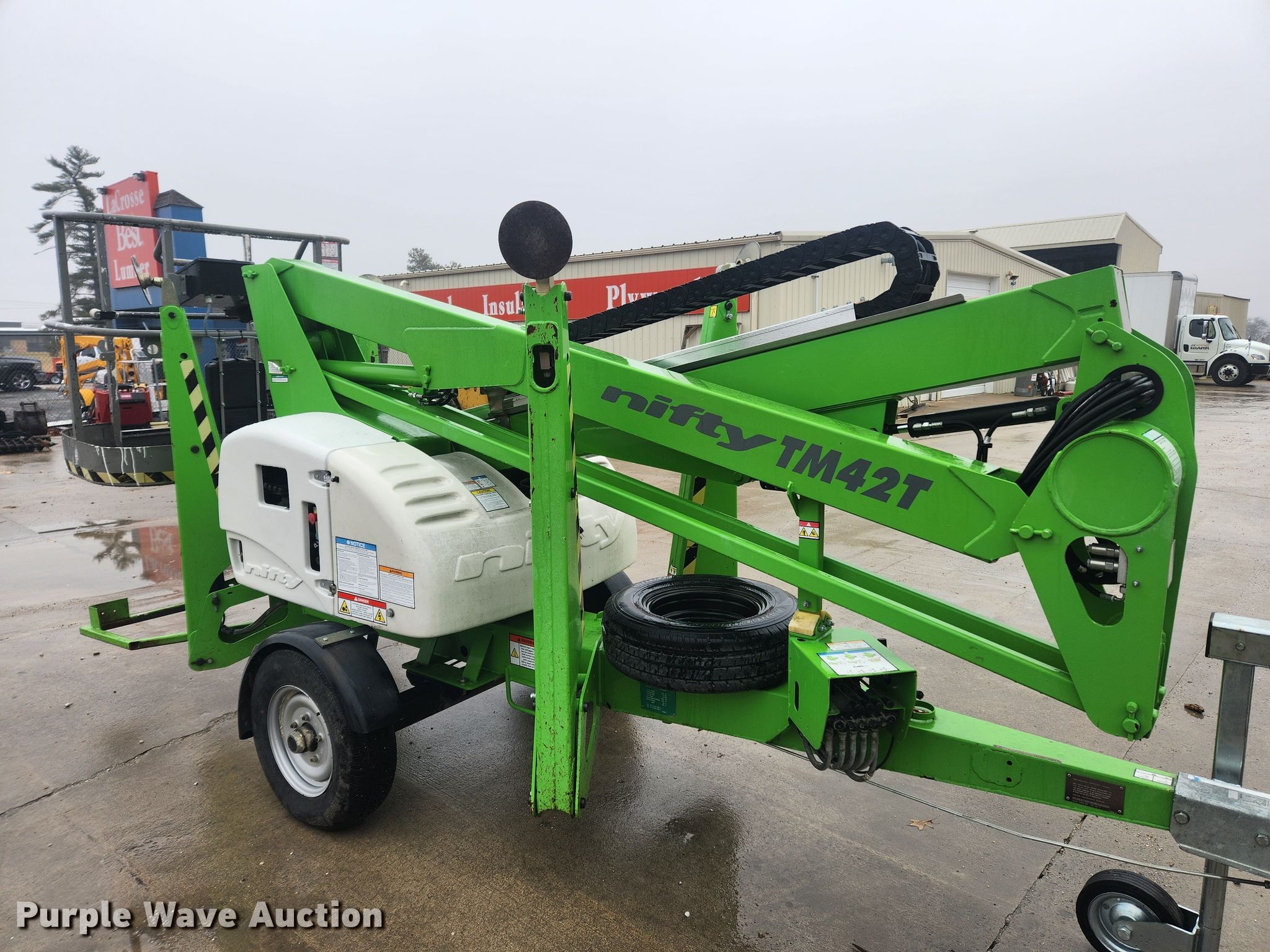 Purple Wave is selling a used Boom Lift in Missouri. This item is a 2017 Nifty TM42T boom lift with the following: Hours: Unknown, VIN: SLN42TGE9HM036584