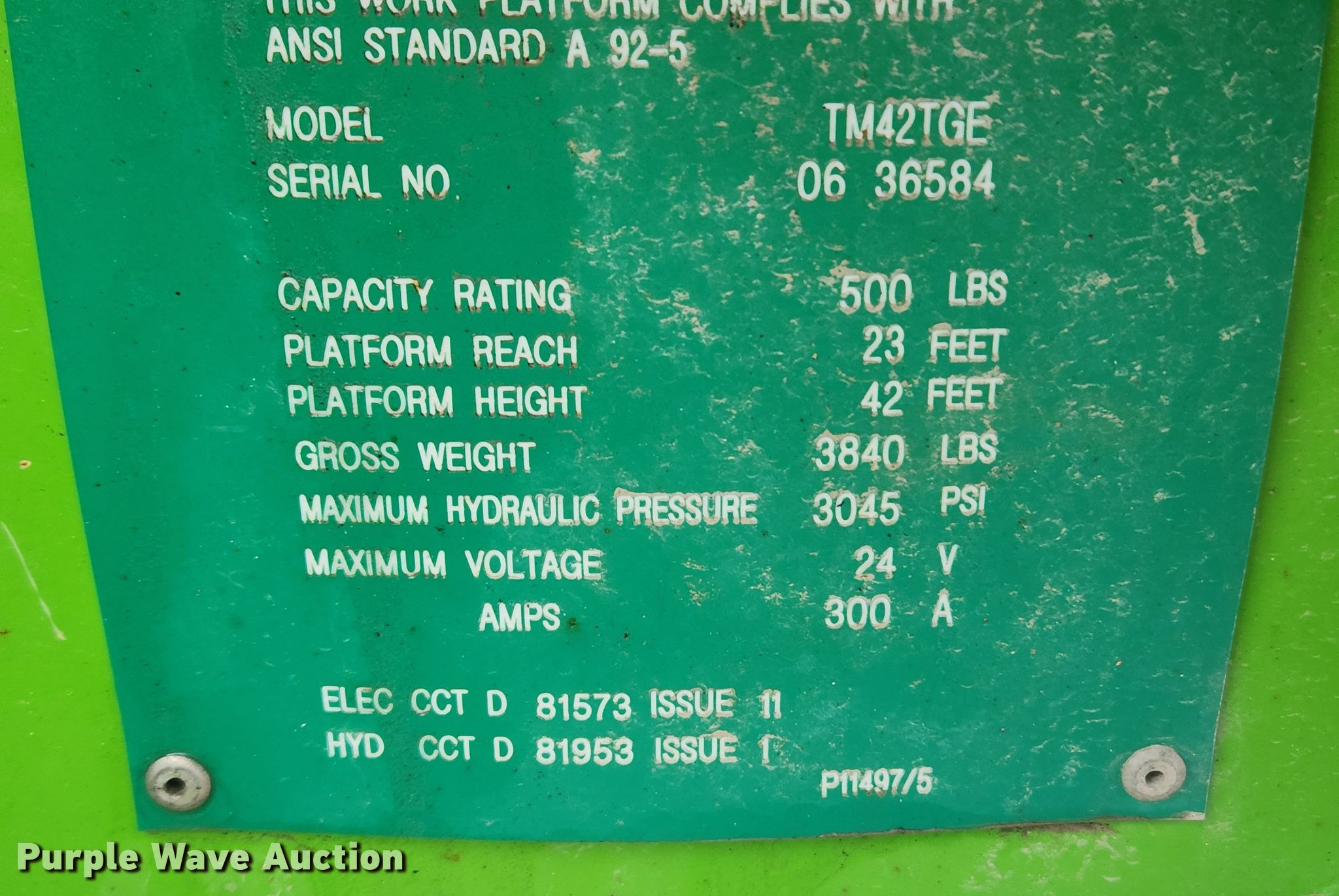 2017 Nifty TM42T boom lift has sold in Bowling Green, Missouri for $19800. Item JB9632 sold on March 16th, 2023.