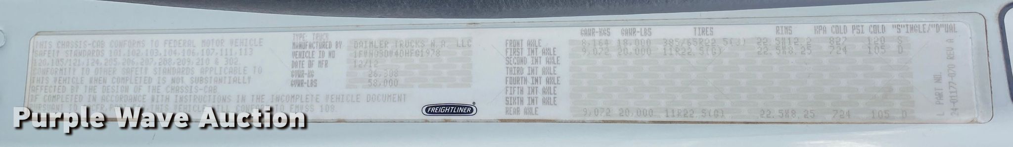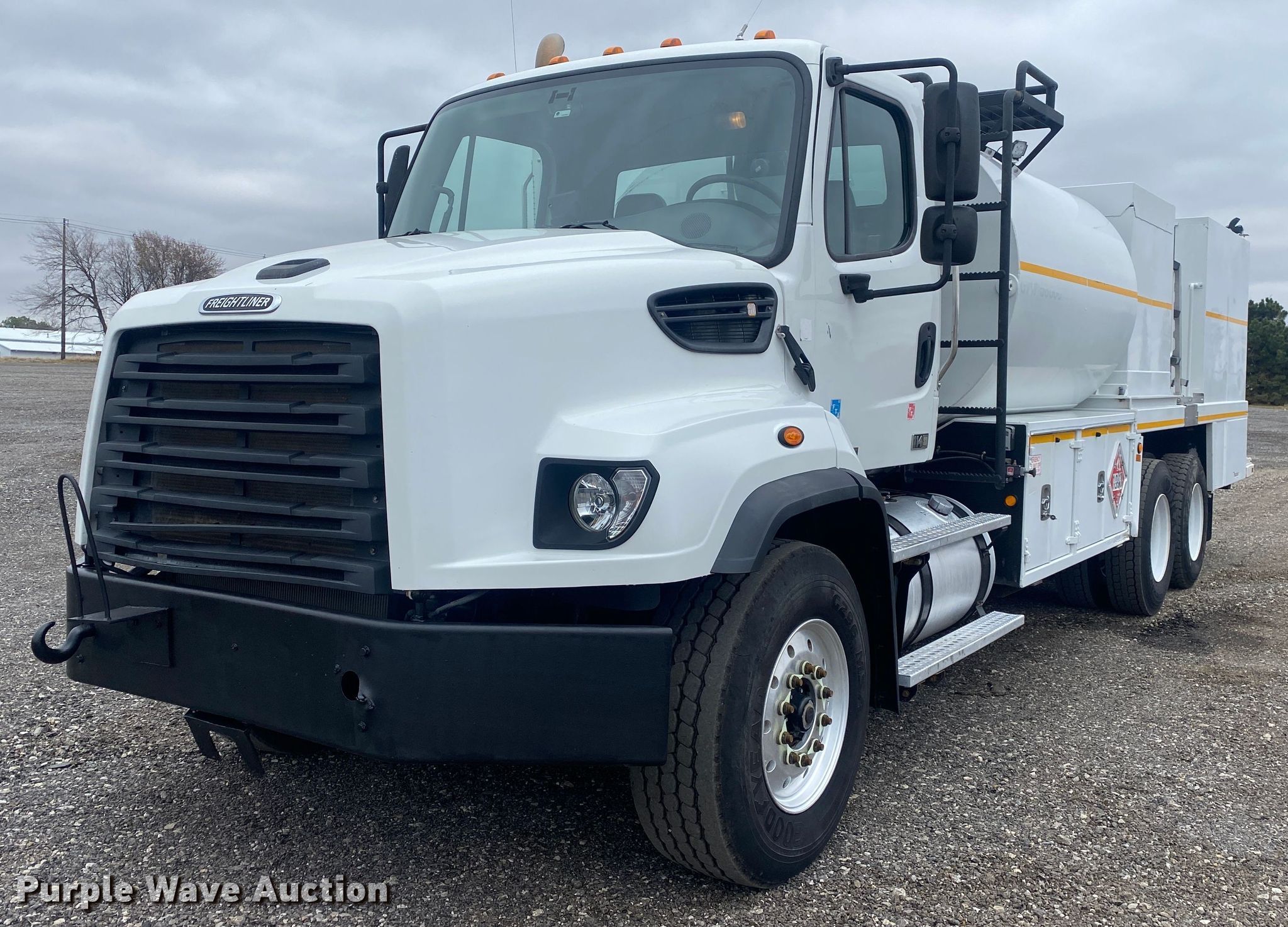 Purple Wave is selling a used Fuel Truck in Oklahoma. This item is a 2013 Freightliner 114SD fuel / lube truck with the following: Miles: 124,056 on odometer, Hours: 14,047 on meter, VIN: 1FVHG3DV4DHFG1978