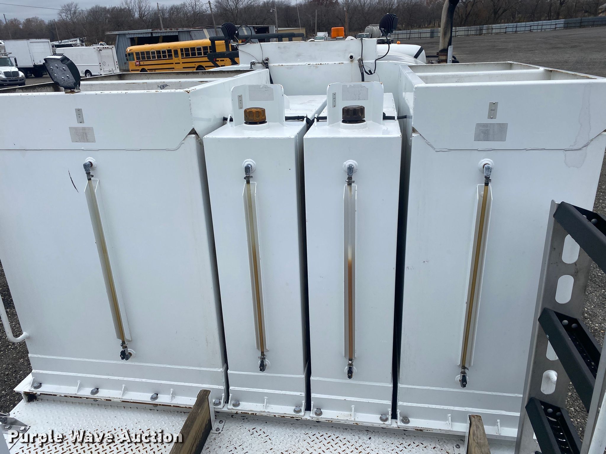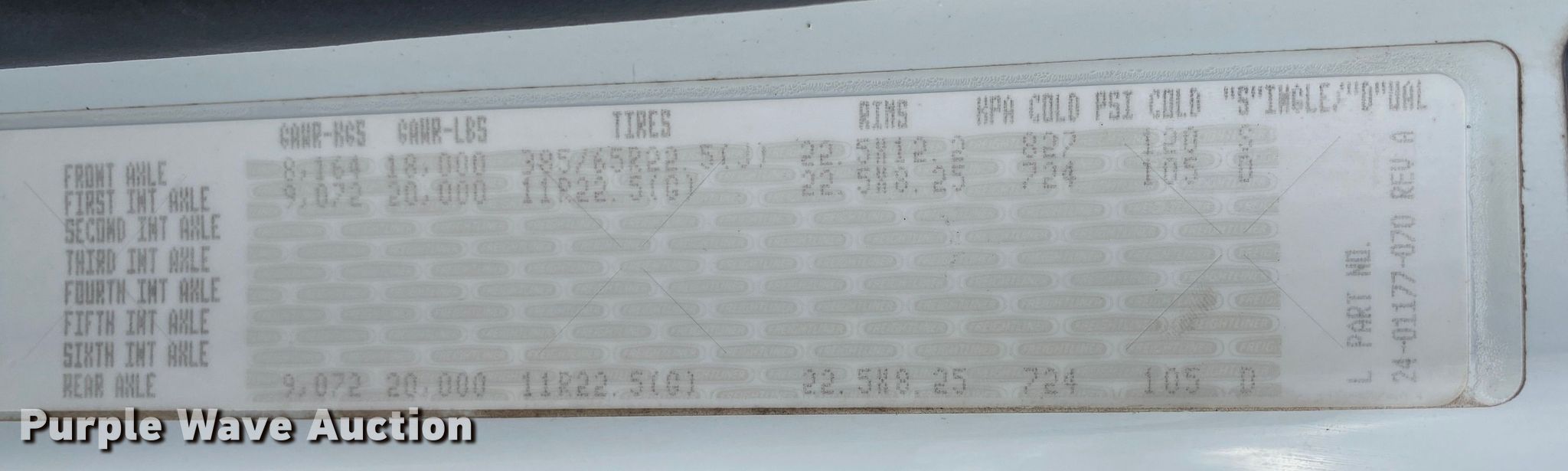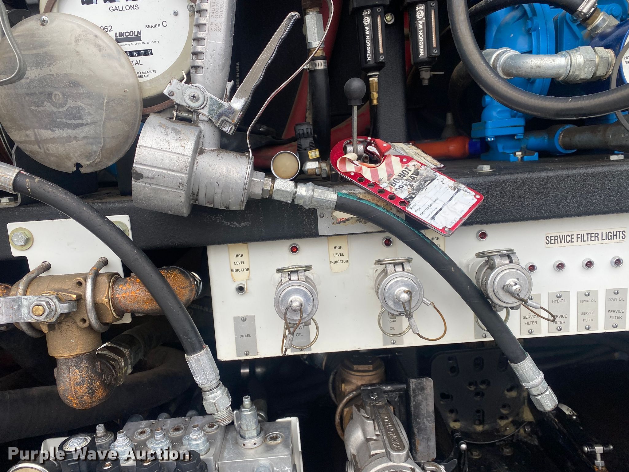 2013 Freightliner 114SD fuel / lube truck. Miles: 124,056 on odometer, Hours: 14,047 on meter, VIN: 1FVHG3DV4DHFG1978. Engine Detroit Diesel DD13, Displacement: 12.8L, Cylinders: 6, Fuel type: Diesel, HP: 500. Transmission Eaton Fuller, Manual, Speed: 10. Chassis Axles: Tandem, Differential lock: Inter-axle, Suspension: Air, Brakes: Air, PTO, GVWR: 58,000 lbs. Interior AC, Heat, Heated mirrors, Cruise control. Features Bed / tank 22' L x 86" W, Fuel Compartments: 1, Hose reels: 7, Nozzles, Metered pumps: 1 Make: Lincoln, Oil/lube reservoirs Hydraulic fluid, Grease, Motor oil, Used oil.. Tires Front: 385/65R22.5, Rear: 11R22.5. Notes Dash warning indicator: ABS. Oklahoma title. Title distribution may be delayed up to 14 days from verification of funds. 15107 North 137th East Avenue. Collinsville, OK 74021