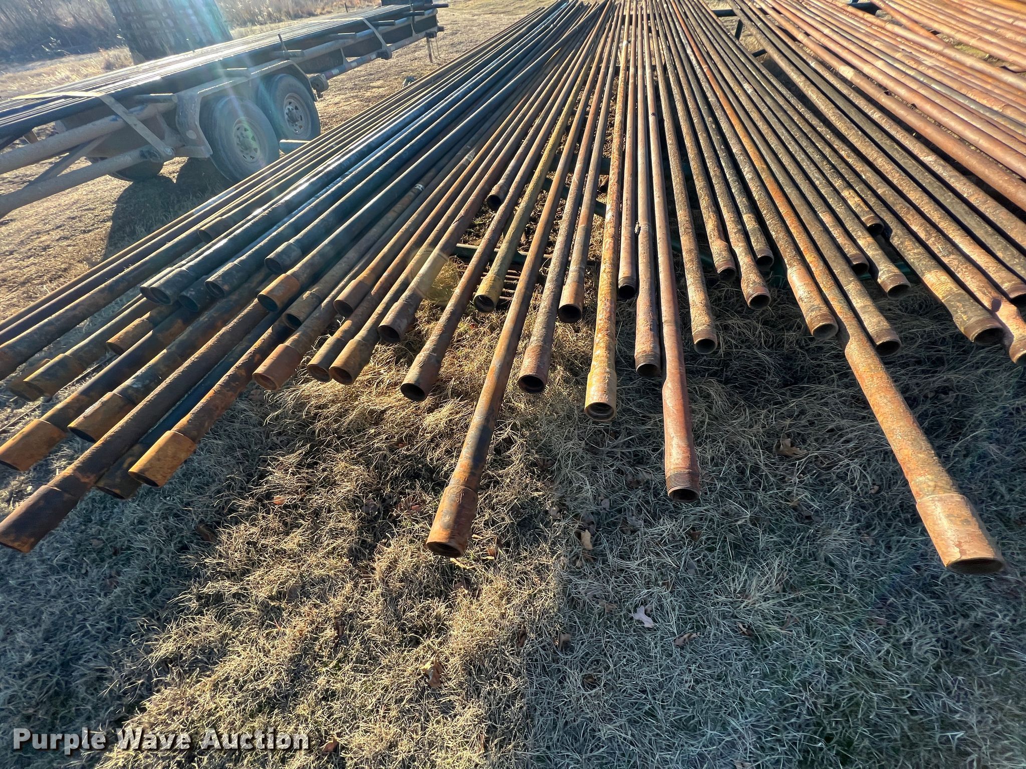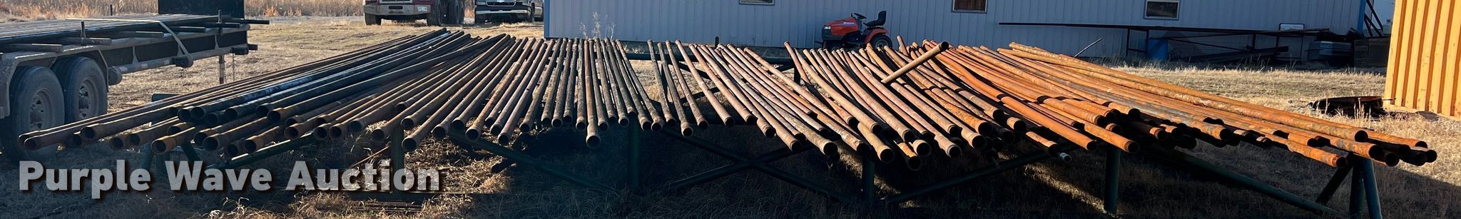 Purple Wave is selling a used Pipe in Oklahoma. This item is a Approximately 32 oilfield pipes with the following: 1,000 linear feet, Approx. 31' average length, 2 3/8" diameter