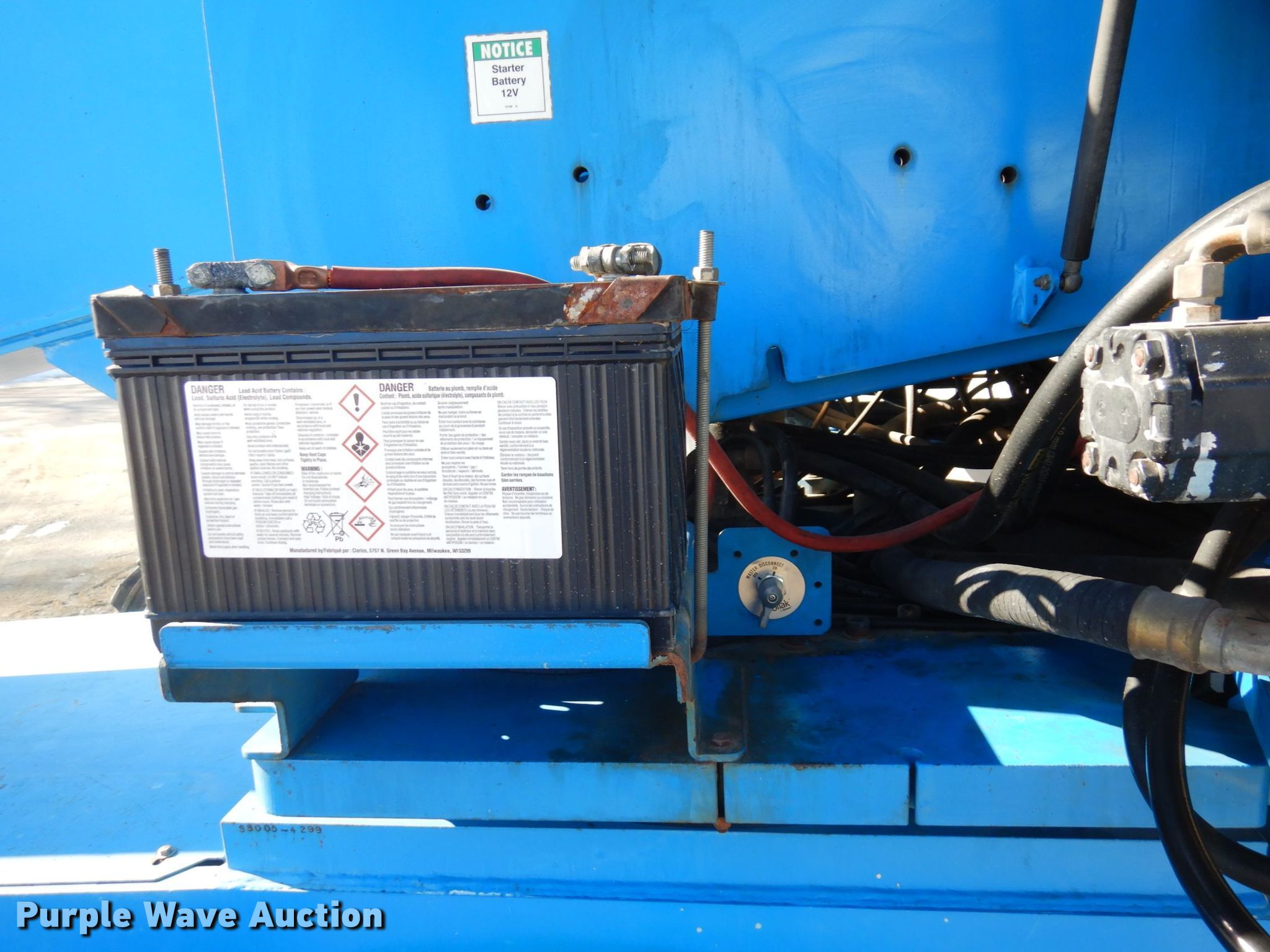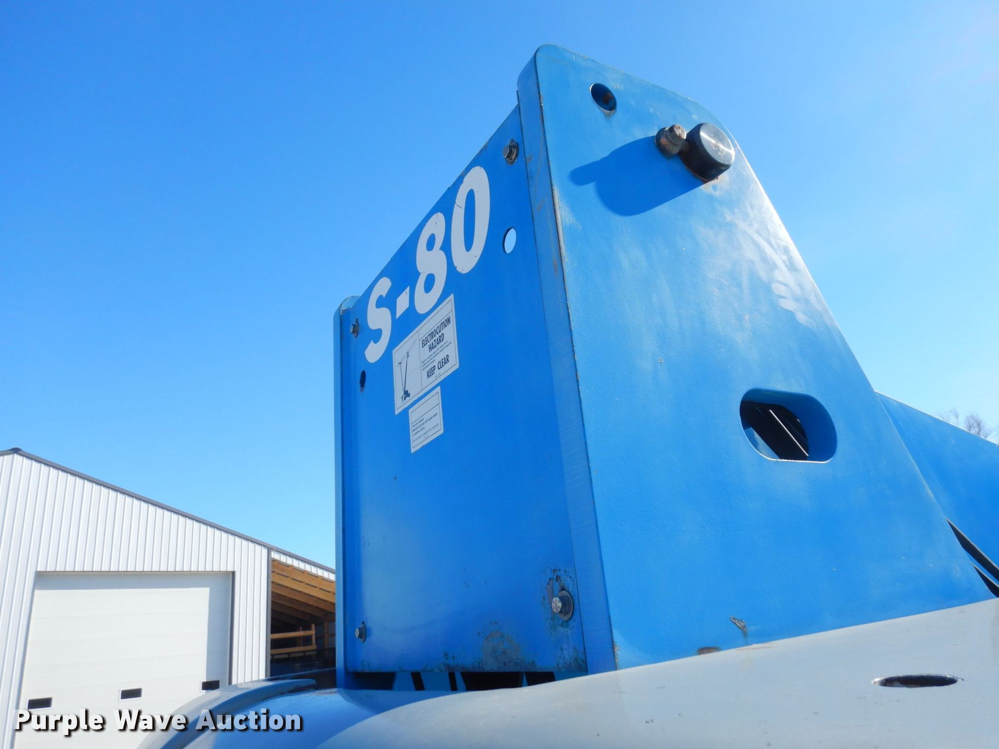 2005 Genie S80 boom lift. Hours: 4,489 on meter, Serial: S8005-4299. Engine Deutz, Cylinders: 4, Fuel type: Diesel, HP: 78. Chassis Four wheel drive. Features Rough terrain, Maximum lift capacity: 500 lbs, Maximum reach length: 71' 11", Maximum lift height: 80', Hydraulic leveling, Platform: 33" L x 93" W, AC power outlet, Controls: Platform, Ground, Platform rotation: Hydraulic. Tires Tire size: 385/65-22.5, Foam filled. Mulvihill Irrigation. 25495 Alverno Avenue. Farmington, MN 55024
