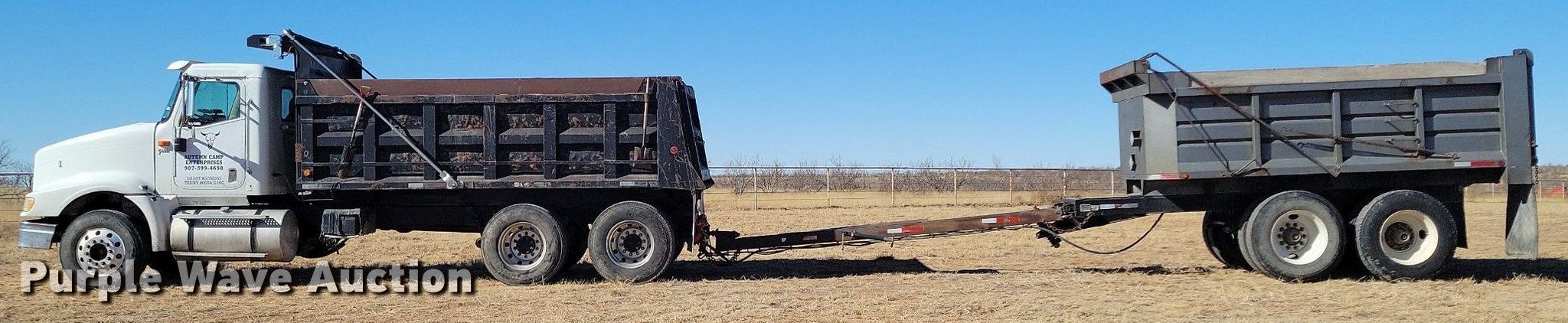 2005 International 9400i dump truck with trailer. Miles: 604,125 on odometer, VIN: 3HSCNAPR35N055461. Engine Cummins ISX 435ST, Displacement: 15L, Cylinders: 6, Fuel type: Diesel, HP: 435, Engine brake. Transmission Eaton Fuller, Manual, Speed: 10. Chassis Axles: Tandem, Differential lock: Inter-axle, Suspension: Air Dump valves, Brakes: Air, PTO, GVWR: 52,000 lbs. Interior AC, Heat, Heated mirrors, Cruise control. Features Dump bed Ox Bodies 16FT, 16' 6" L x 95" W, Side height: 53", Side board height: 8", Bed type: Steel, Roll tarp, Ram: Single , End gate: Air operated. Tires Size: 11R22.5. Notes Windshield chipped or cracked. 2004 Leach end dump pup trailer VIN: 1L9PD35314H209223. Dimensions Overall: 32' 3" L x 98" W, Body: 13' L x 98" W, Side height: 51", Sideboard height: 8". Features Body type: Steel, Ram: Single, End gate: Air operated, Roll tarp. Chassis Hitch: Pintle, Landing gear: Single, Suspension: Spring, Brakes: Air, Axles: Tandem. Tires Steel wheels, Size: 11R24.5. View repairs. Texas titles. Titles have liens that will be released following the close of the auction. Title distribution may be delayed up to 30 days from verification of funds. 12331 Tascosa Rd. Amarillo, TX 79124