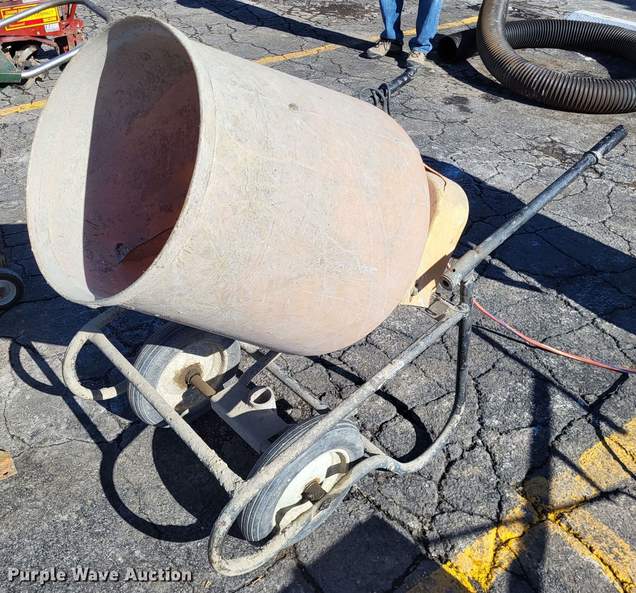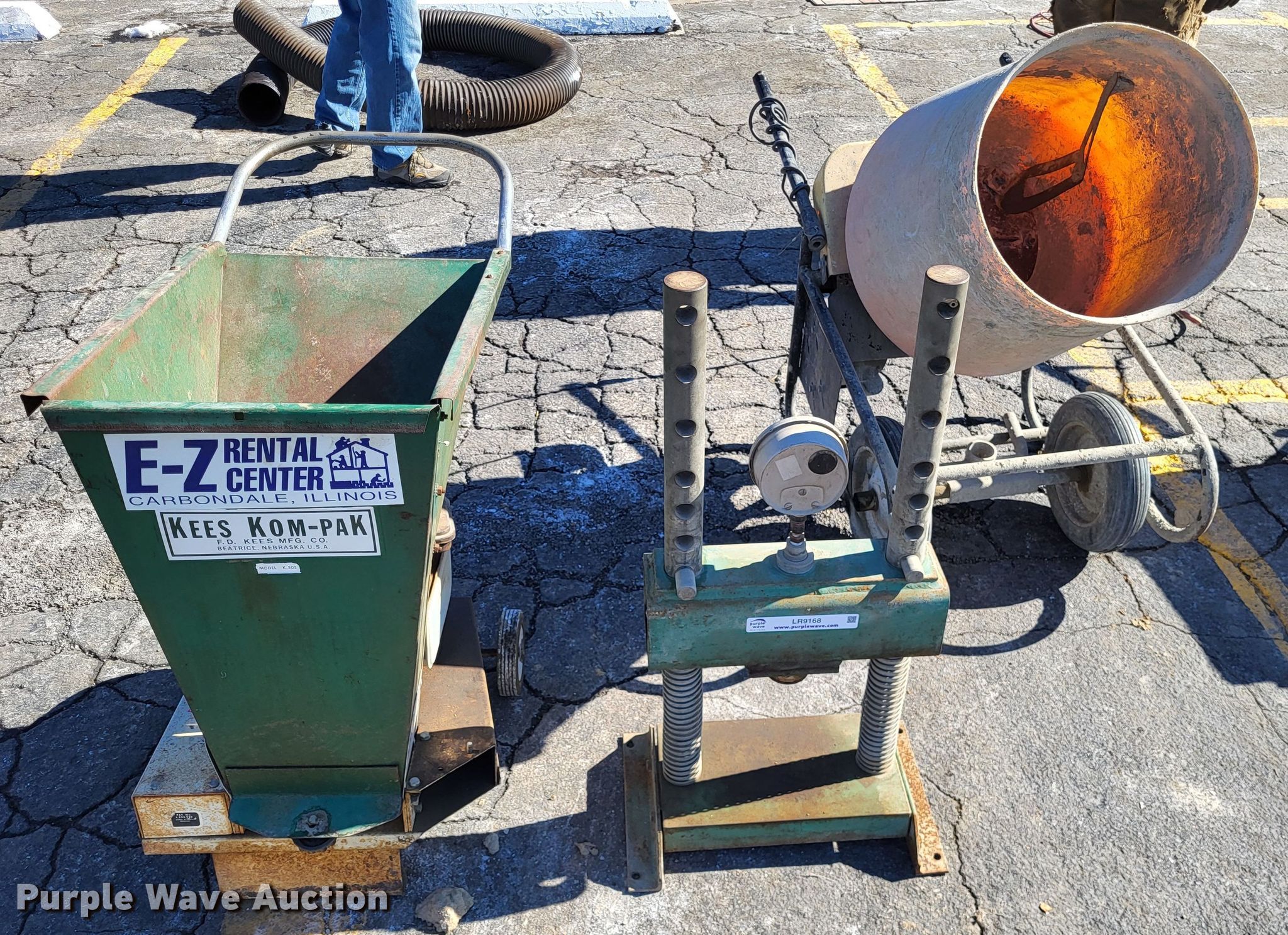 Purple Wave is selling a used Tools in Illinois. This item is a Tools with the following: Kushlan electric concrete mixer, Serial: 350002464, Polyurethane drum, Kees Kom-Pak K505 leaf mulcher, 30 ton test stand for bottle jacks