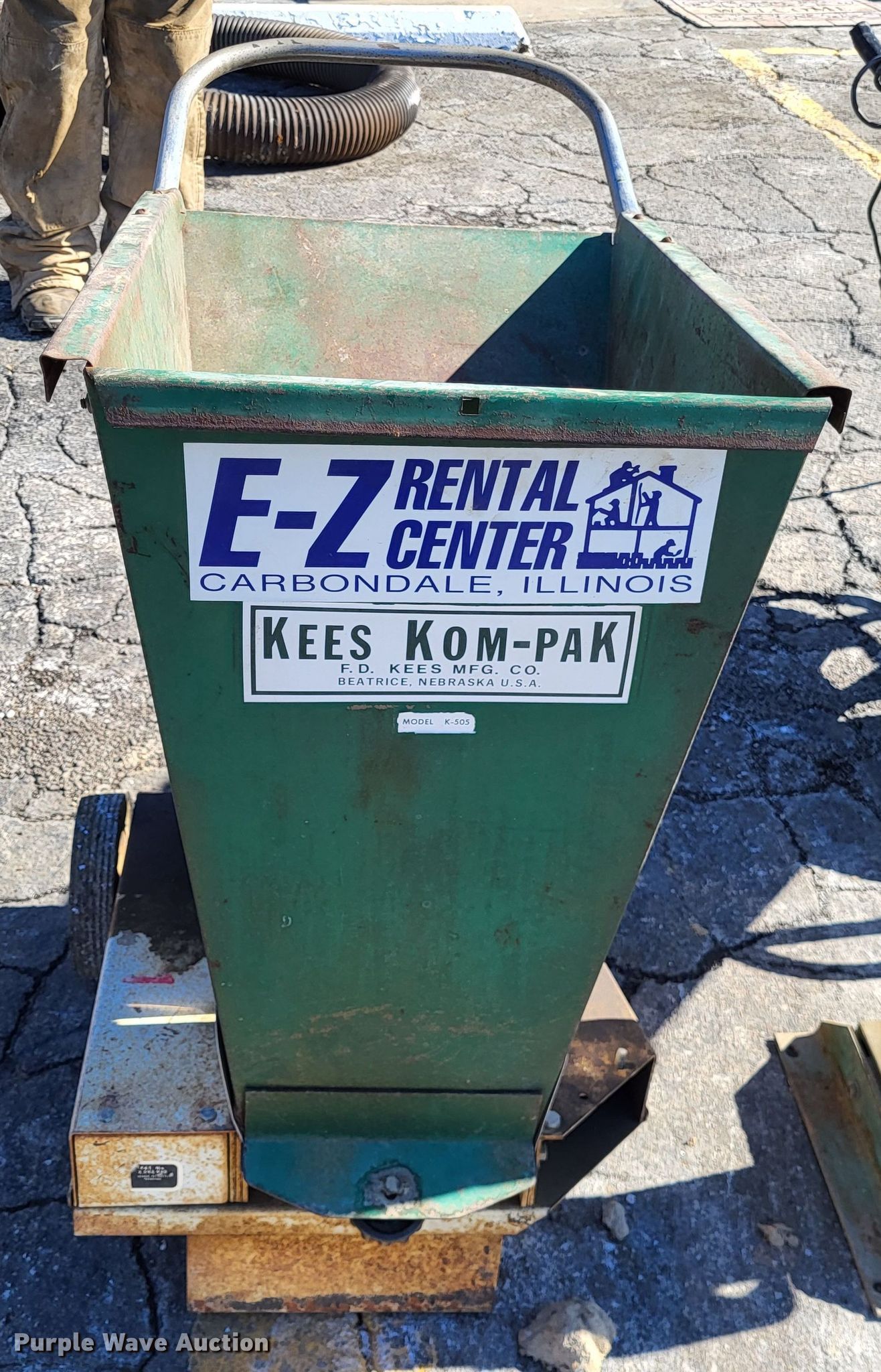 Tools. Kushlan electric concrete mixer Serial: 350002464, Polyurethane drum, Kees Kom-Pak K505 leaf mulcher, 30 ton test stand for bottle jacks. E-Z Rental Center Inc.. 1817 W Sycamore St. Carbondale, IL 62901