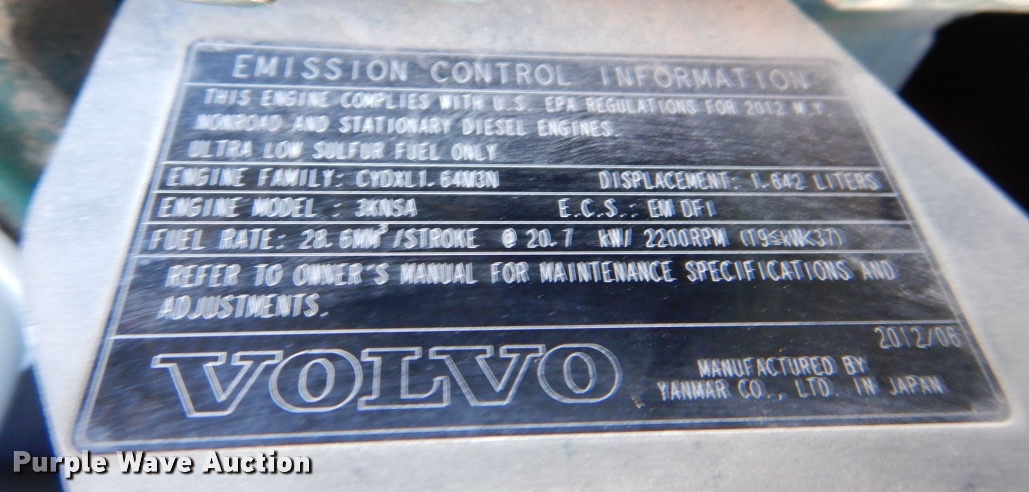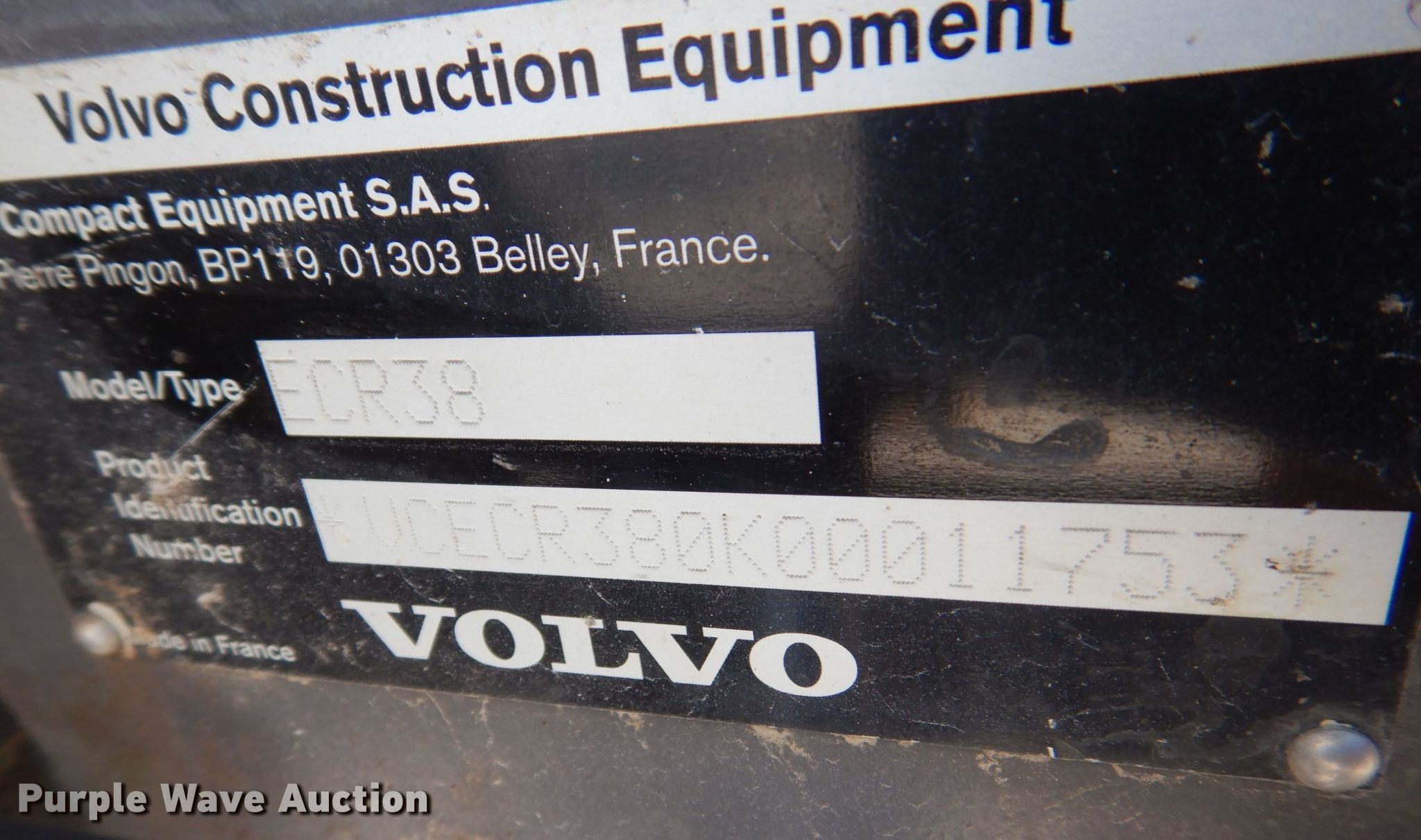 Purple Wave is selling a used Mini Excavator in Iowa. This item is a 2012 Volvo ECR38 mini excavator with the following: Hours: 1,842 on meter, Serial: VCECR380K00011753