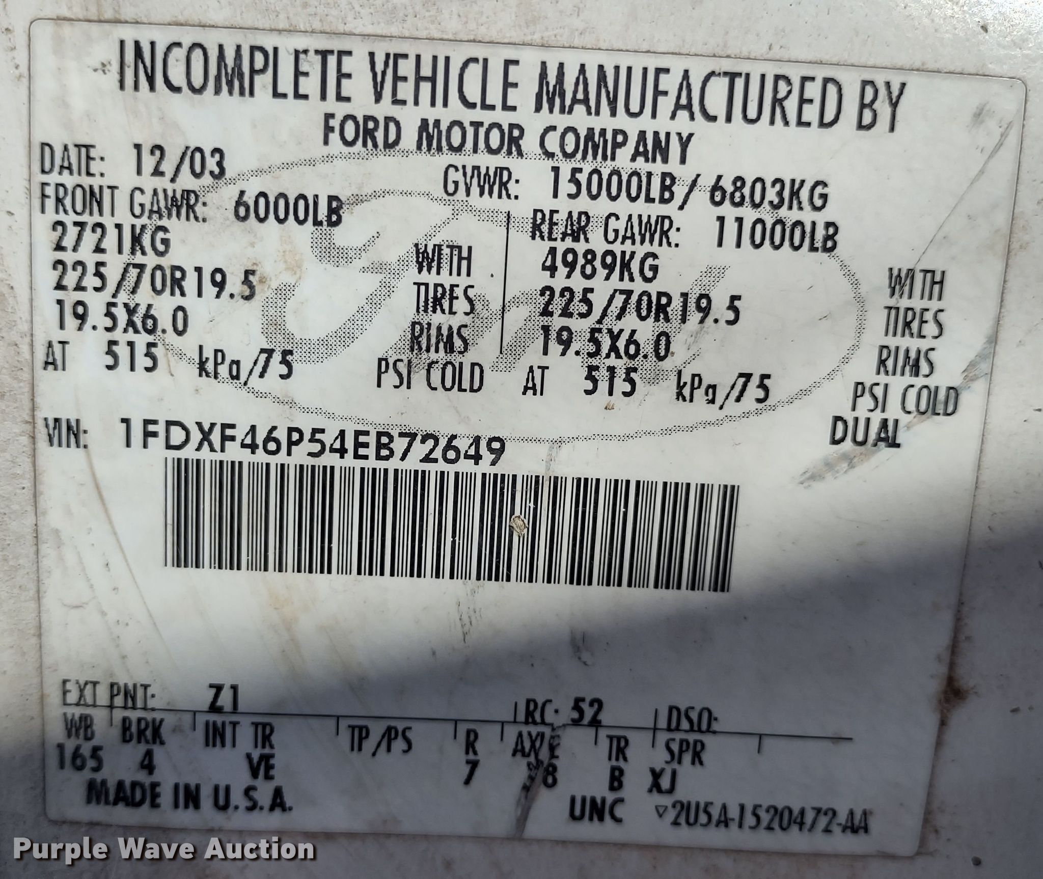 - VIN: 1FDXF46P54EB72649
