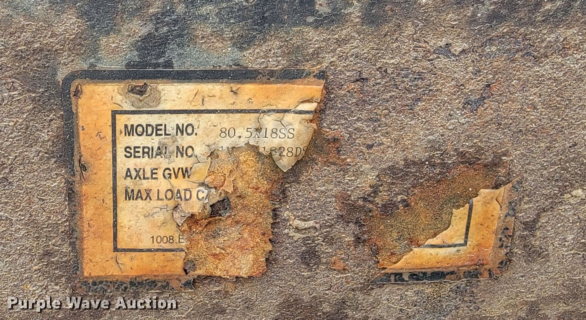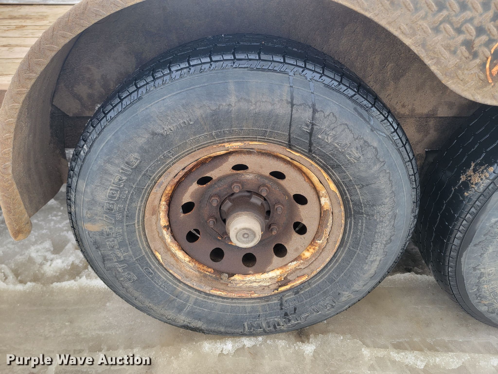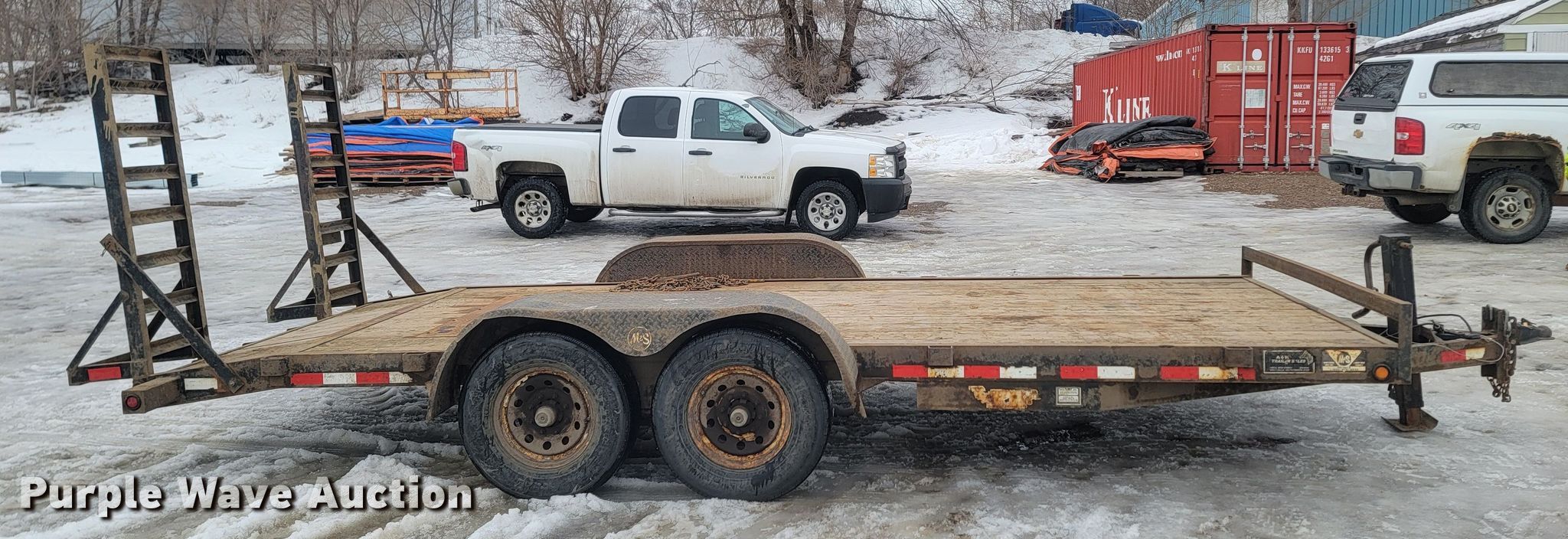 2013 M&S equipment trailer. VIN: 1M9SS1828DS332872. Dimensions Overall: 21' 10" L x 102" W, Deck: 18' L x 80" W, Ramps: Manual Length: 5'. Features Deck type: Wood. Chassis Ball hitch: 2 5/16", Landing gear: Single, Suspension: Spring, Brakes: Electric, Axles: Tandem. Tires Steel wheels, Size: ST235/80R16. South Dakota title. Title distribution may be delayed up to 14 days from verification of funds. Beck & Hofer Construction. 618 E Maple St. Sioux Falls, SD 57104