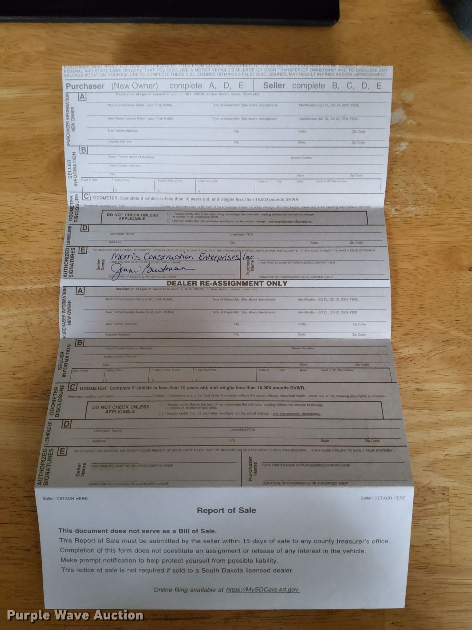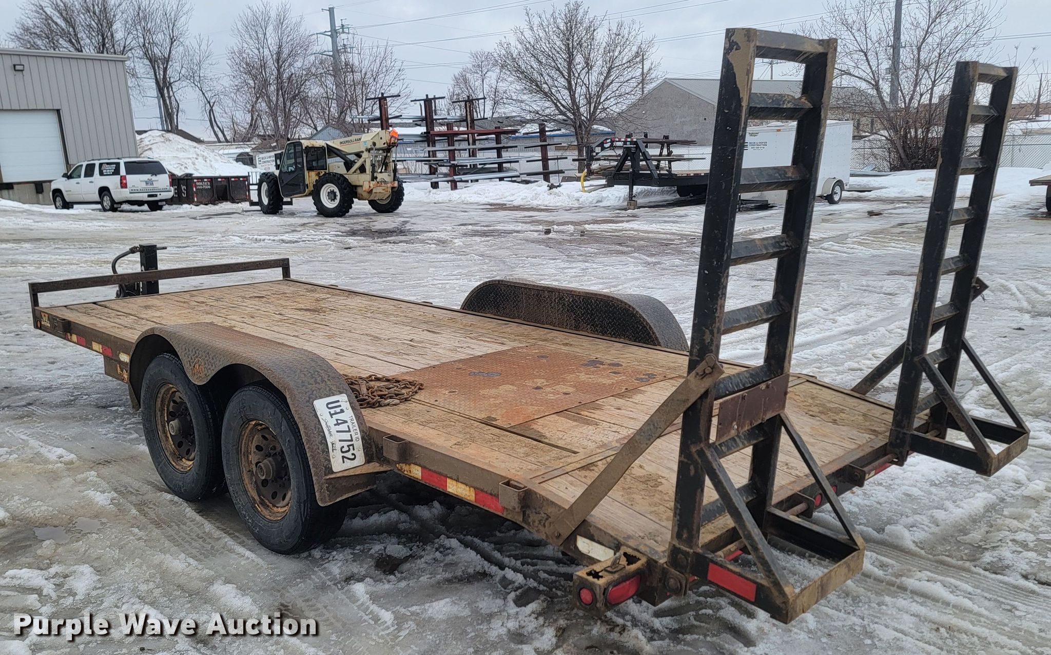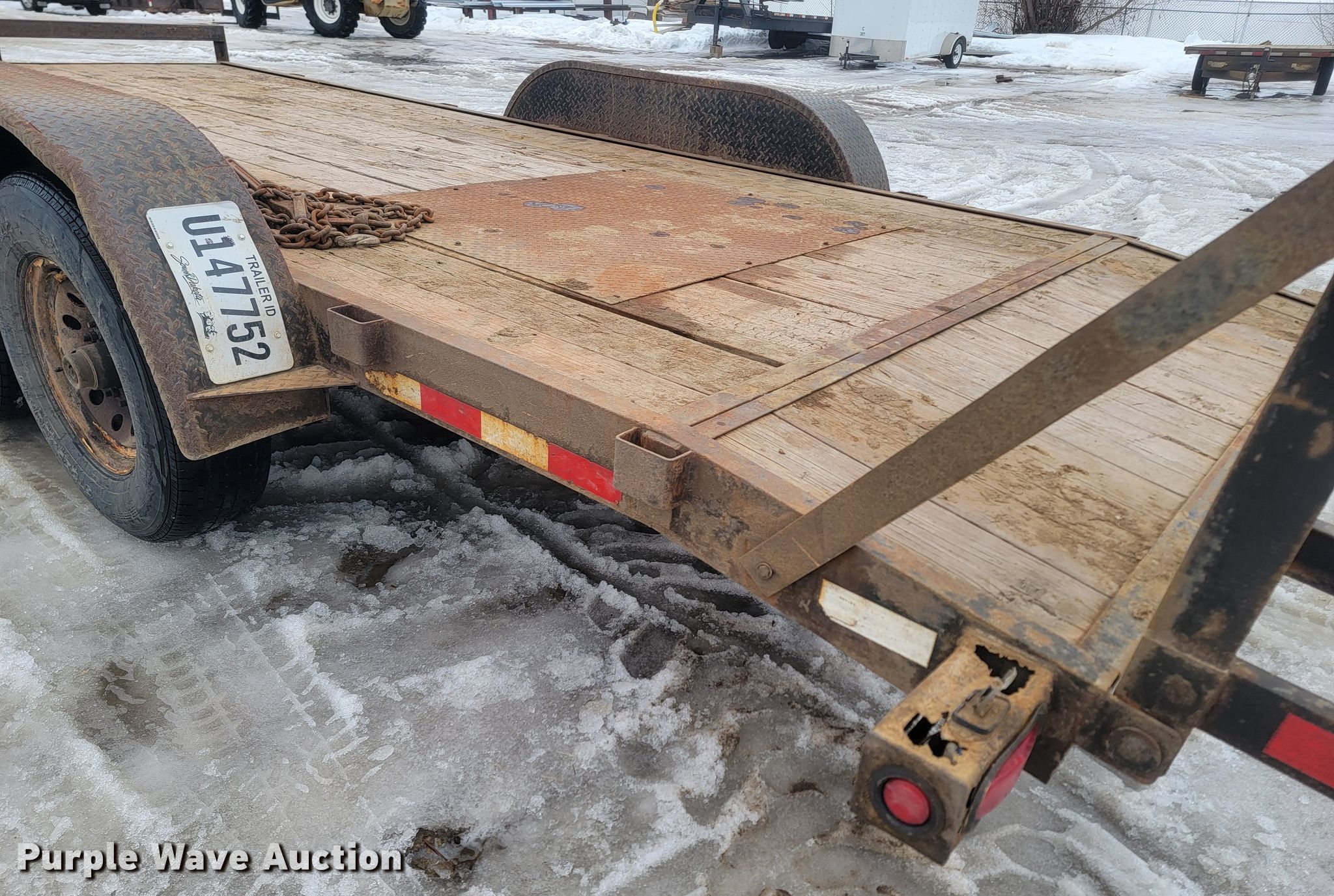 2013 M&S equipment trailer. VIN: 1M9SS1828DS332872. Dimensions Overall: 21' 10" L x 102" W, Deck: 18' L x 80" W, Ramps: Manual Length: 5'. Features Deck type: Wood. Chassis Ball hitch: 2 5/16", Landing gear: Single, Suspension: Spring, Brakes: Electric, Axles: Tandem. Tires Steel wheels, Size: ST235/80R16. South Dakota title. Title distribution may be delayed up to 14 days from verification of funds. Beck & Hofer Construction. 618 E Maple St. Sioux Falls, SD 57104