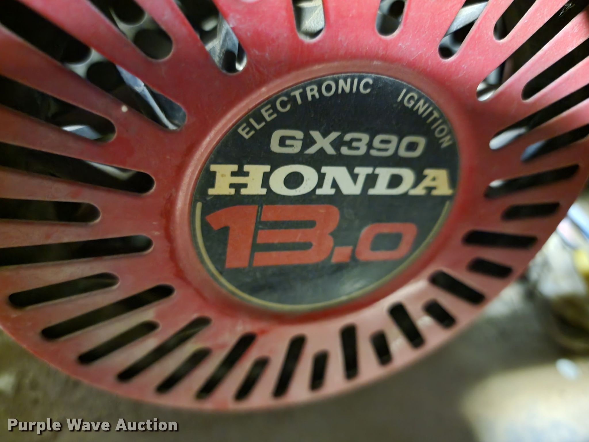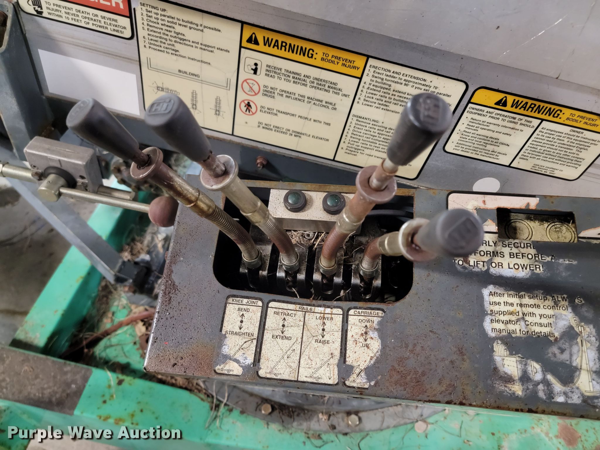 Paus-Garlock 25-WH-K conveyor. Serial: 456889. Engine Honda, Cylinders: 1, Fuel type: Gas, HP: 13. Features Maximum lift height: 81', Maximum lift capacity: 600 lbs, Hydraulic lift, Telescopic. Tires Tire size: LT225/75R15. BHI Construction. 27240 South Dakota 115. Harrisburg, SD 57032