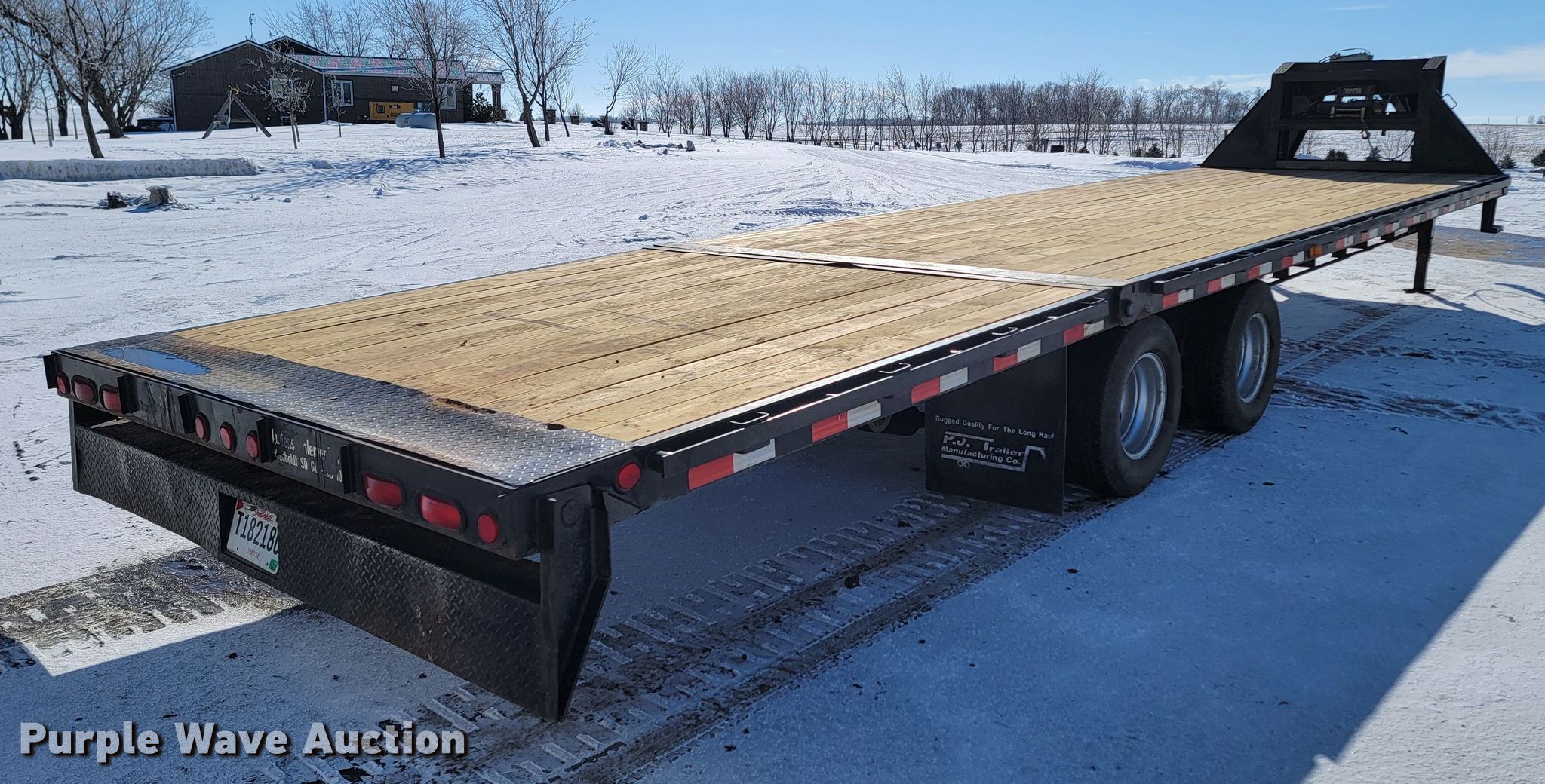 2007 PJ equipment trailer. VIN: 4P5FY322771097470. Dimensions Overall: 40' 7" L x 102" W, Deck: 32' L x 102" W, Hydratail length: 9'. Features Deck type: Wood, Winch Champion. Chassis Hitch: Gooseneck, Landing gear: Dual, Suspension: Spring, Brakes: Electric, Axles: Tandem. Tires Steel wheels, Size: ST235/80R16. South Dakota title. Title distribution may be delayed up to 14 days from verification of funds. TCC Inc.. 23011 485th Avenue. Flandreau, SD 57028