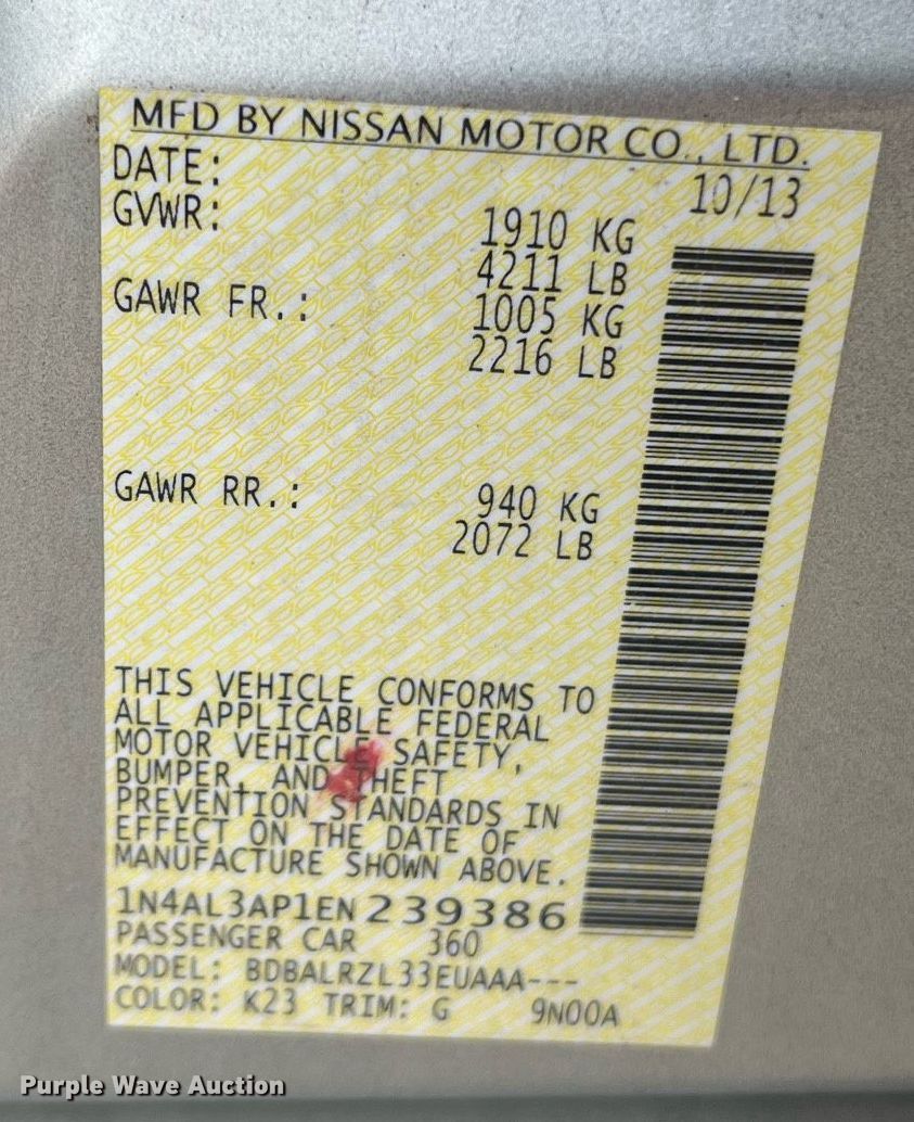 Purple Wave is selling a used Passenger Vehicle in Kansas. This item is a 2014 Nissan Altima with the following: Miles: 73,477 on odometer, VIN: 1N4AL3AP1EN239386