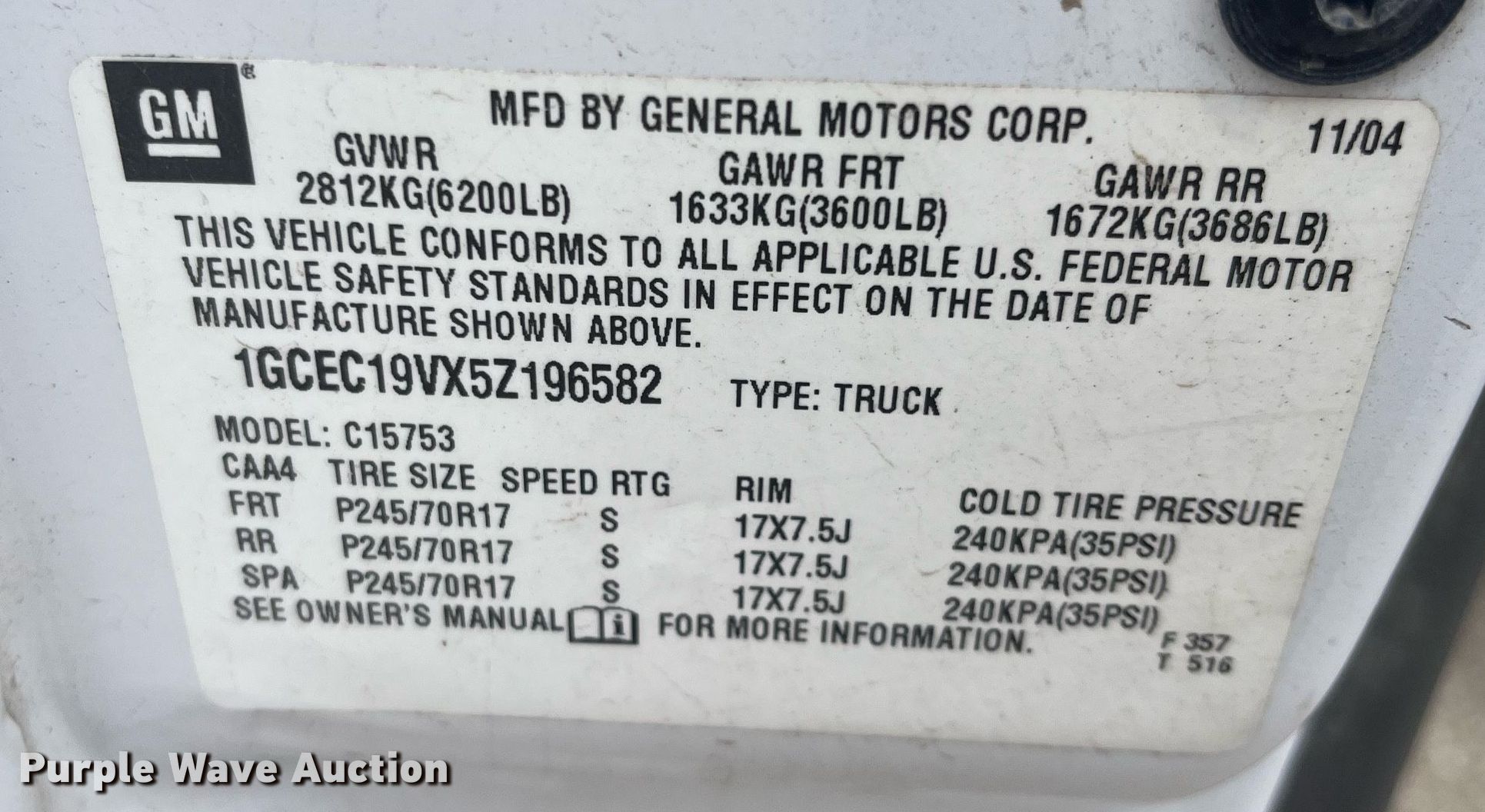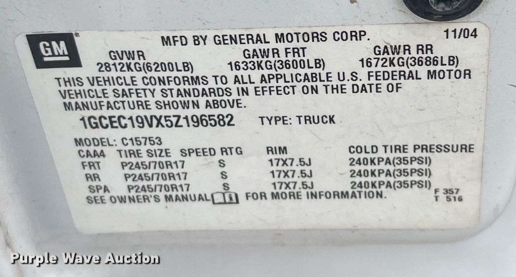 - VIN: 1GCEC19VX5Z196582