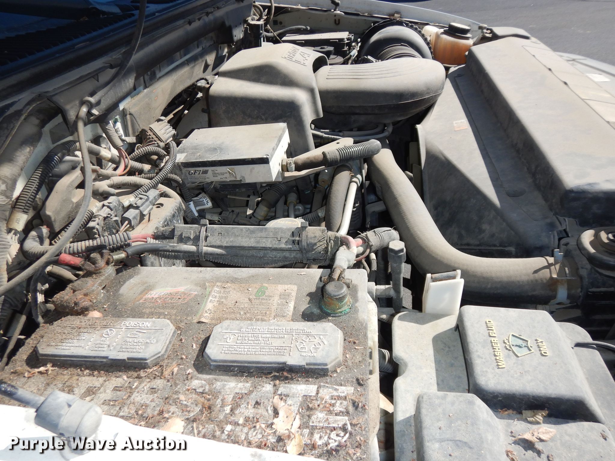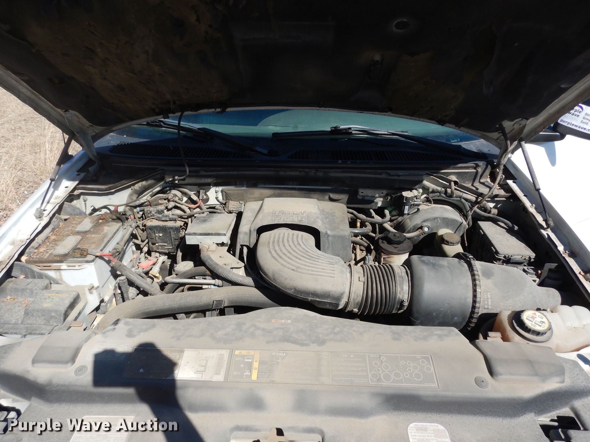 2001 Ford F150 XL pickup truck. Miles: 54,160 on odometer, VIN: 2FTPF17Z11CA55316, Unit #: 98. Engine Displacement: 5.4L V8 SOHC, Cylinders: 8, Fuel type: Gas. Transmission Automatic. Interior AC, Heat, Cruise control. Tires Size: 245/75R16. Notes Dash warning indicator: Check engine , Dead battery, Possible timing chain issues, Unit must be towed or hauled, Non-operational unit. Kansas title. Title distribution may be delayed up to 14 days from verification of funds. Purple Wave Auction. 825 Levee Dr.. Manhattan, KS 66502