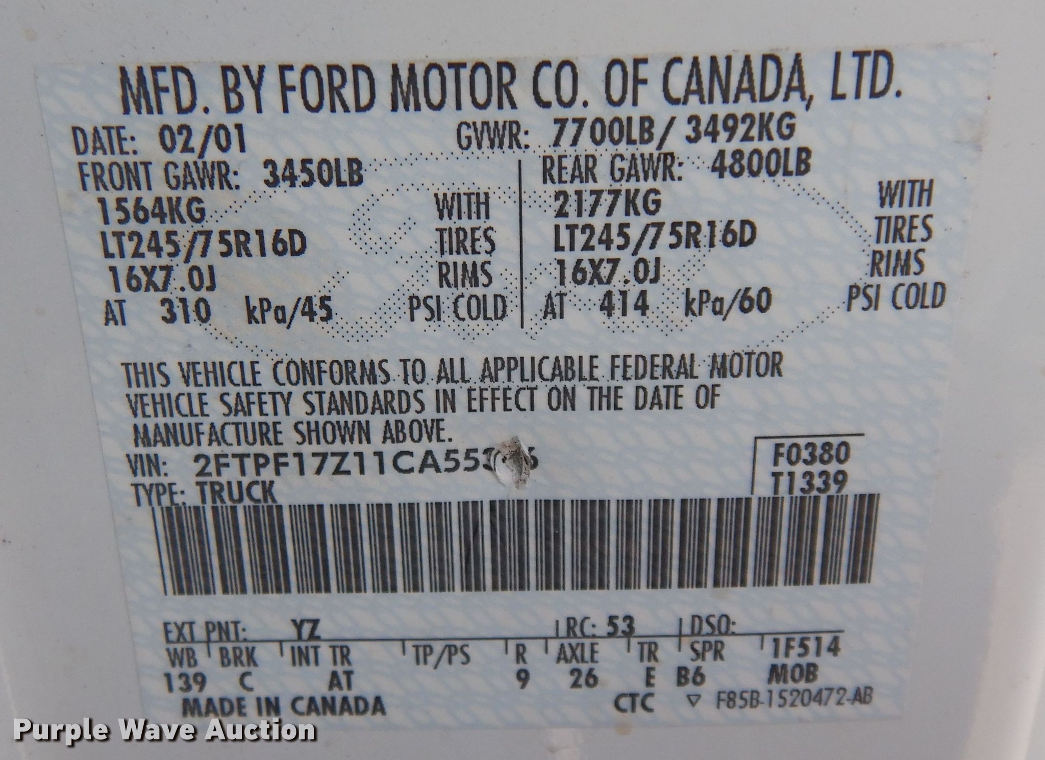 - VIN: 2FTPF17Z11CA55316