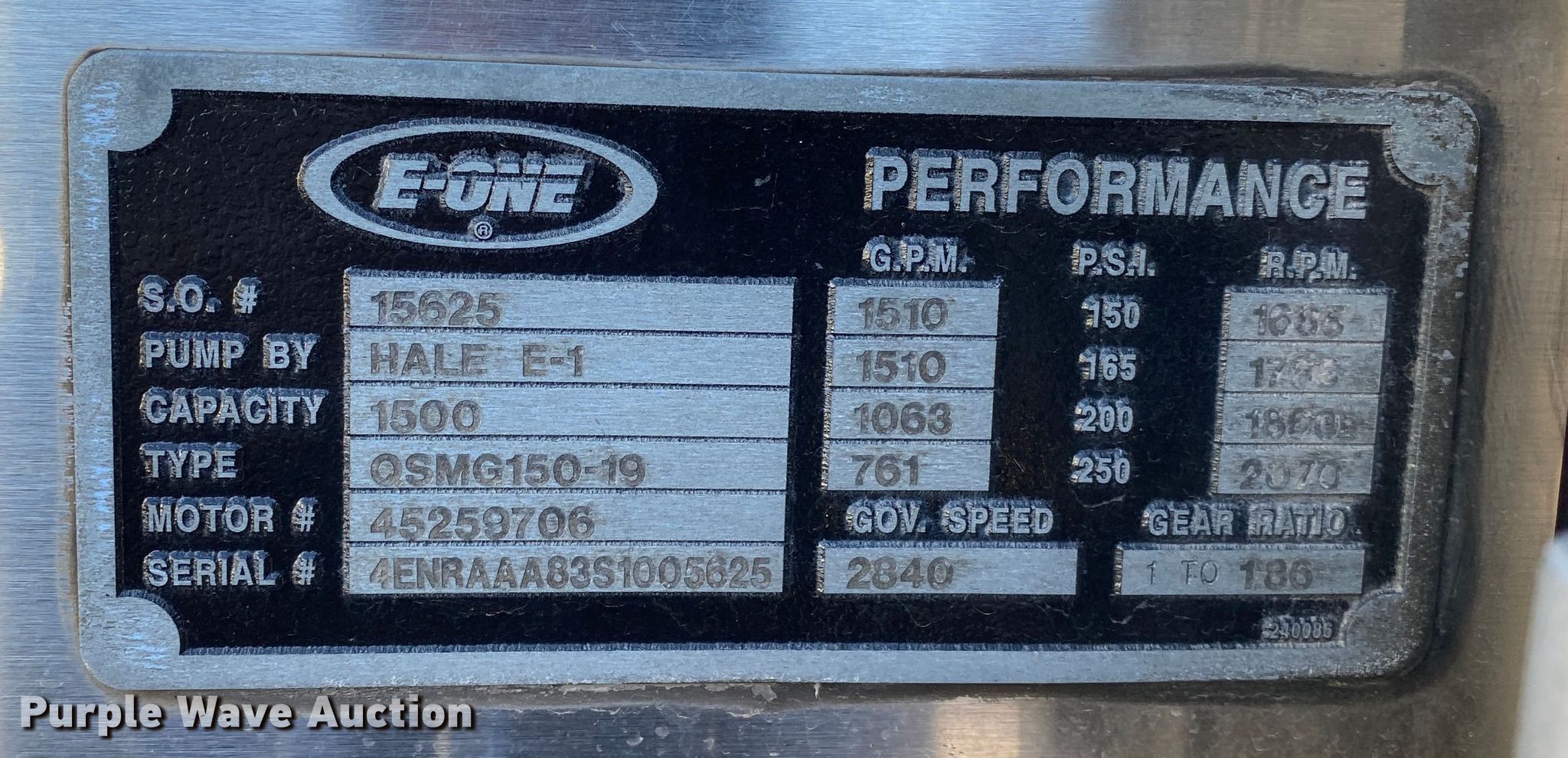 1995 Emergency One pumper fire truck. Miles: 176,164 on odometer, VIN: 4ENRAAA83S1005625. Engine Displacement: 8.3L , Cylinders: 6, Fuel type: Diesel. Transmission Automatic. Chassis Axles: Single, Suspension: Spring, Brakes: Air, GVWR: 37,800 lbs. Interior AC, Heat, Heated mirrors. Features Fire truck body Pump 1,510 gpm.. Tires Size: 315/80R22.5. Notes Non-operational unit. Oklahoma title. Seller is a government entity who will be assigning and distributing the title. Please contact the seller for distribution questions. Title distribution may be delayed up to 30 days from verification of funds. City of Tulsa, OK. 1790 Newblock Park Drive. Tulsa, OK 74127
