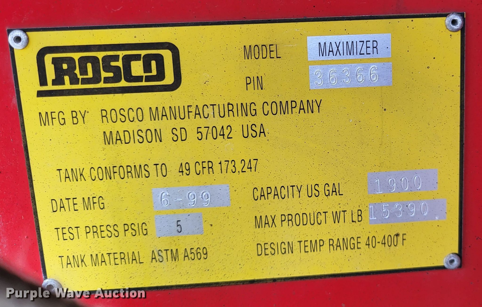 Purple Wave is selling a used Truck Part and Attach. in Missouri. This item is a Rosco Maximizer oil distributor bed with the following: Serial: 36366