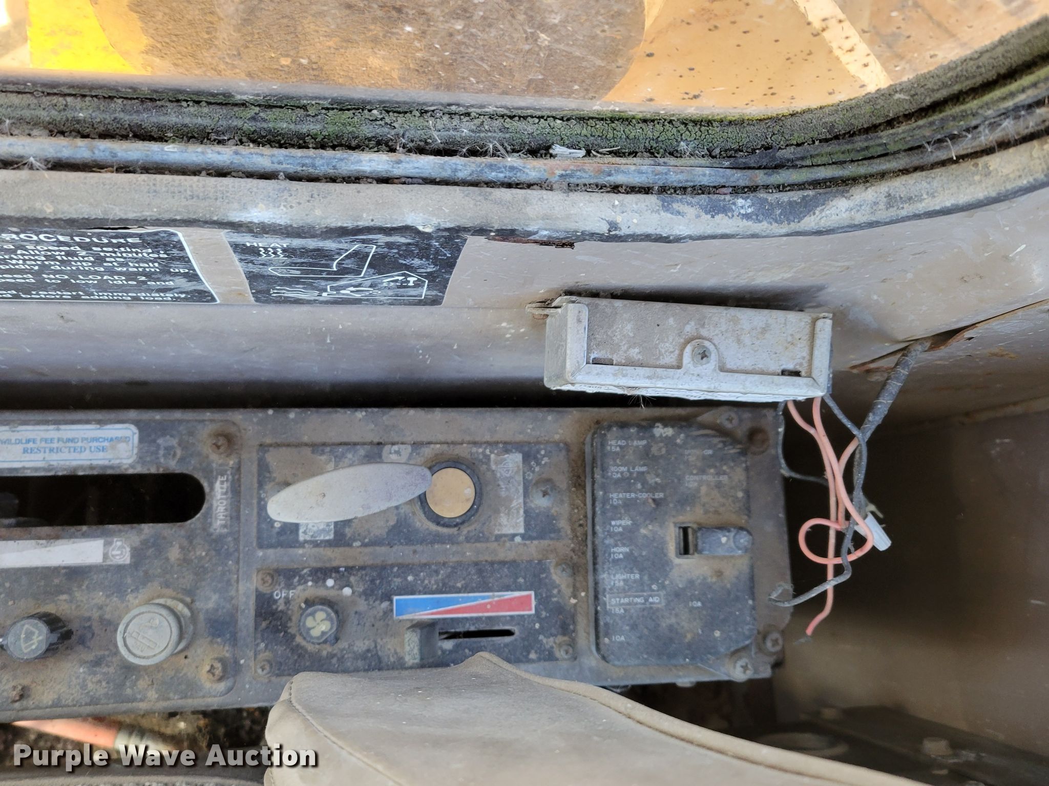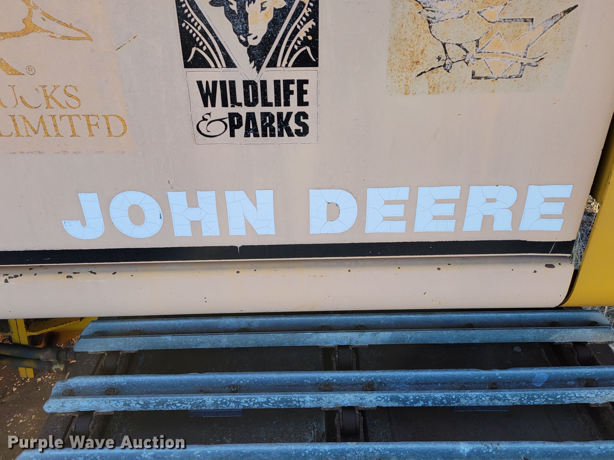 1988 John Deere 790D amphibious excavator. Hours: 4,898 on meter, Serial: CK790DL007631. Engine Cylinders: 6, Fuel type: Diesel. Transmission Hydrostatic, Two speed travel. Operators station Enclosed cab. Features Boom Standard, Stick Stick length: 12', Bucket Deere 35690-01, Capacity: 1.5 cu.yd., Width: 72", Cutting edge: Weld-on, Pontoons 64" H. Tracks Width: 57", Grouser pads: Double, Aluminum tracks. Notes Previously used for dredging, Unknown operating condition. Kansas Wildlife Parks & Tourism. 299 Marsh Trail. Jamestown, KS 66948