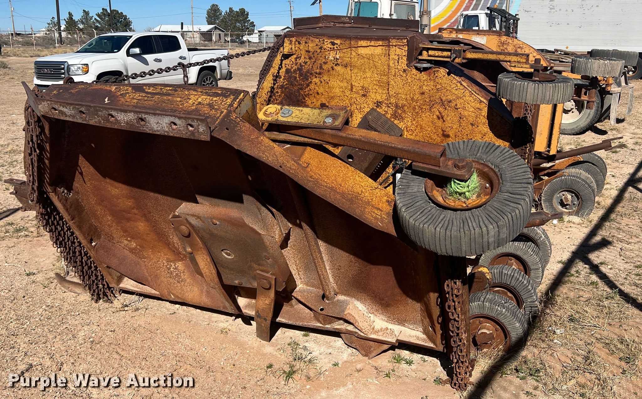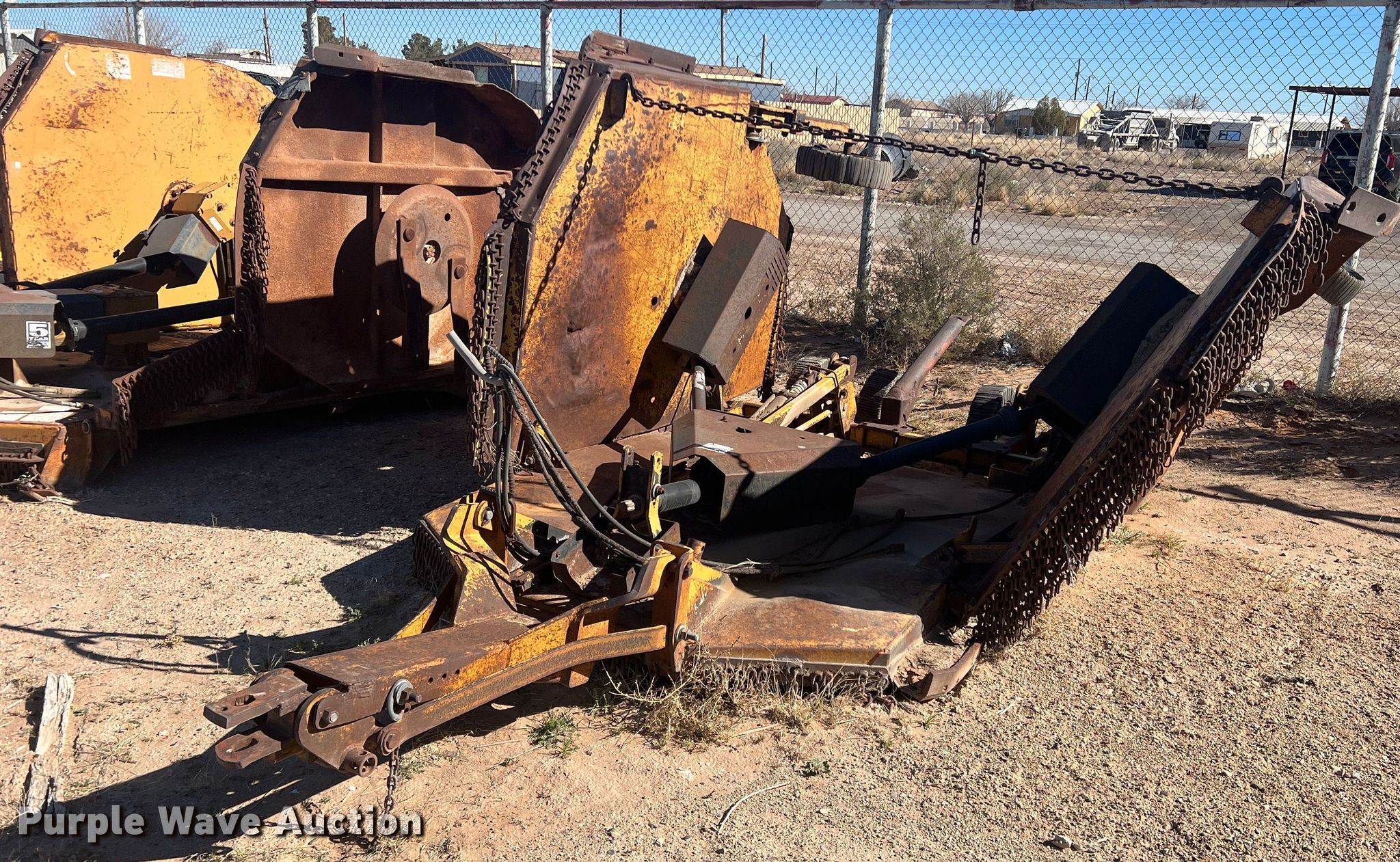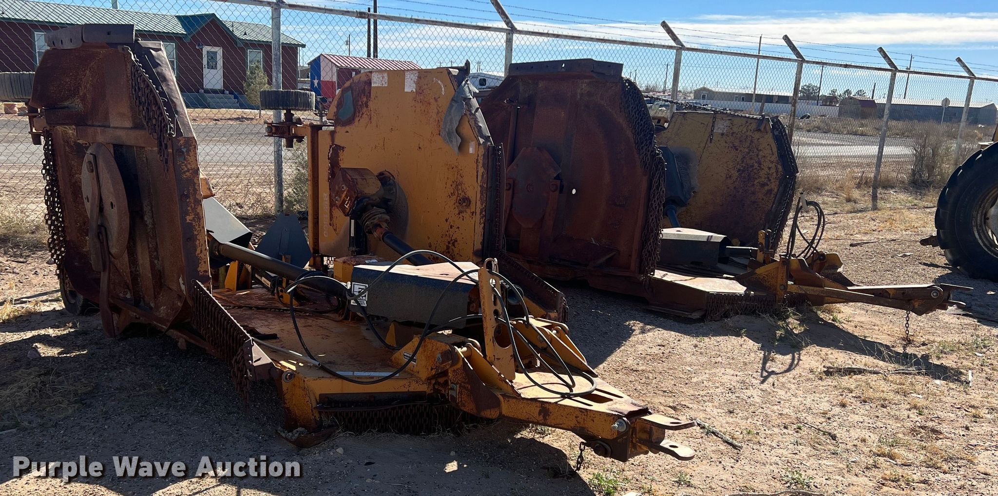 (2) Woods batwing rotary mowers. Features. Width: 15', Hydraulic lift, Hydraulic fold, PTO: 540. Tires Solid. Notes PTO half shafts missing, Non-operational unit. Reeves County. 1384 West F Street. Pecos, TX 79772