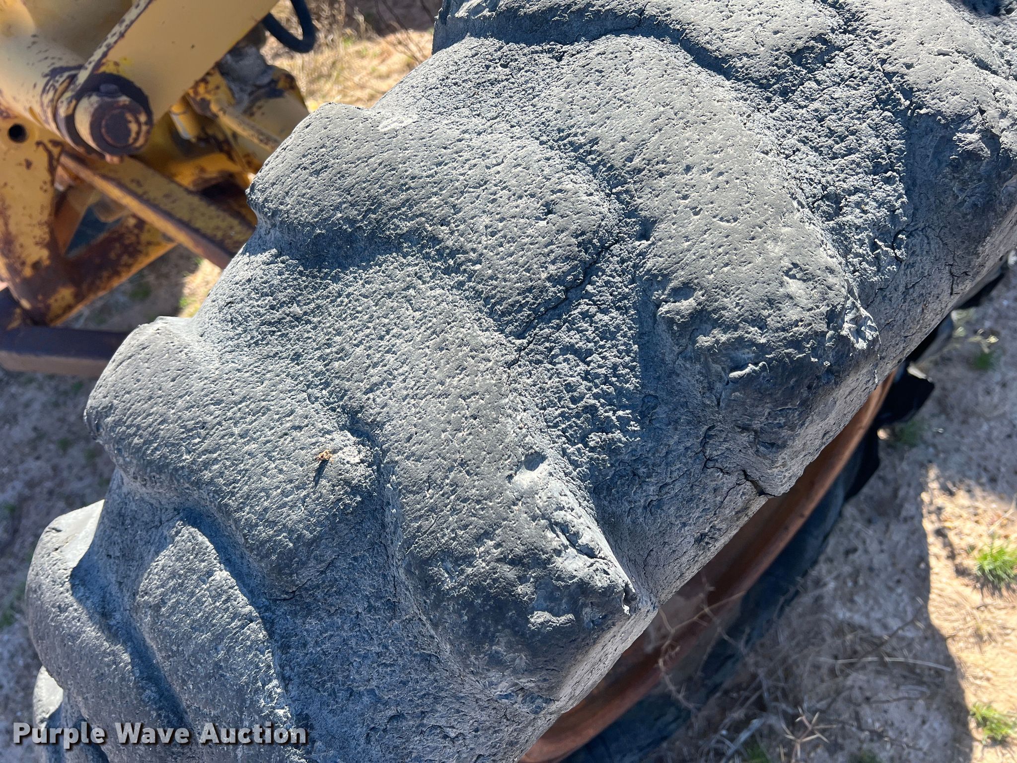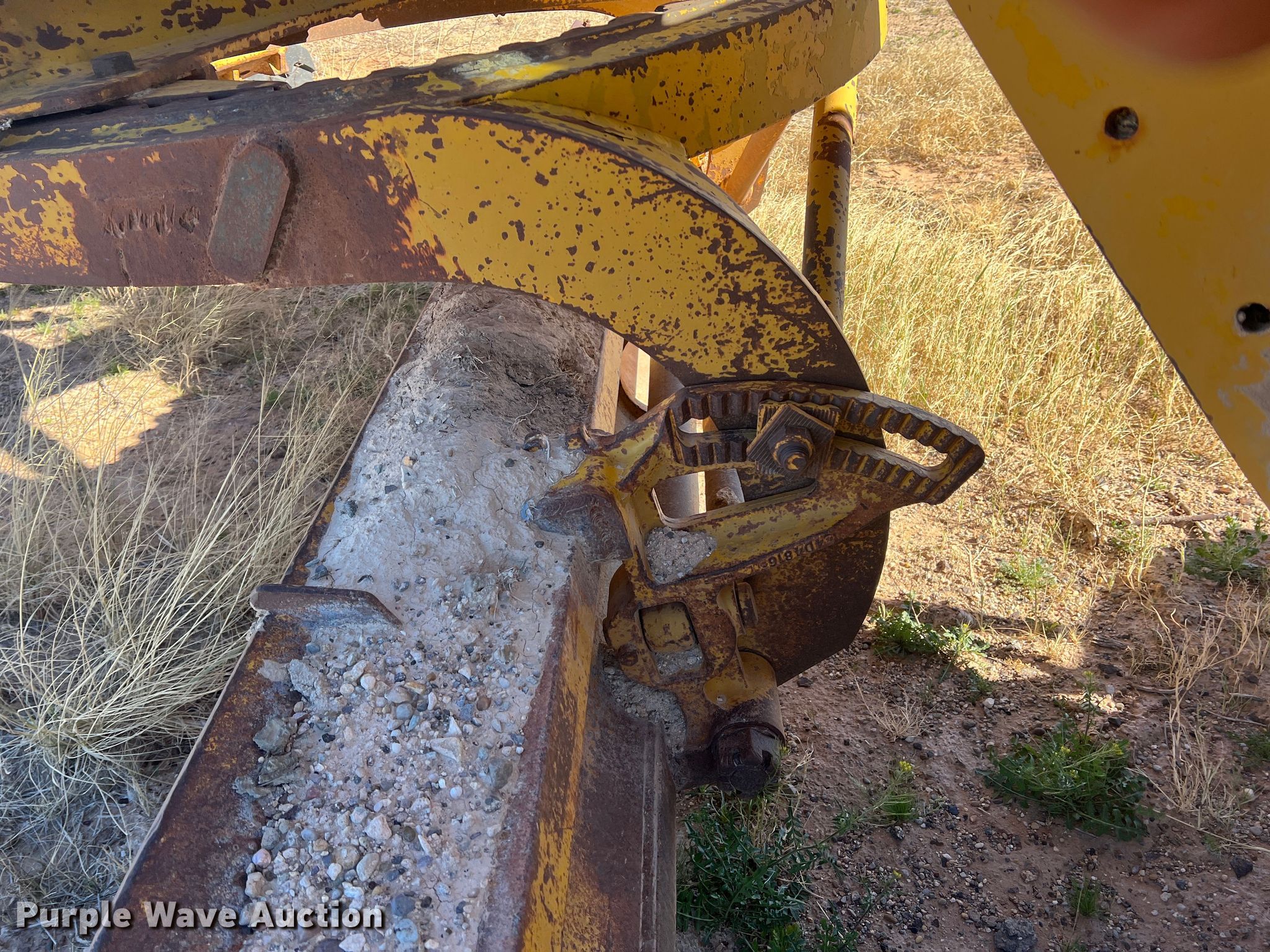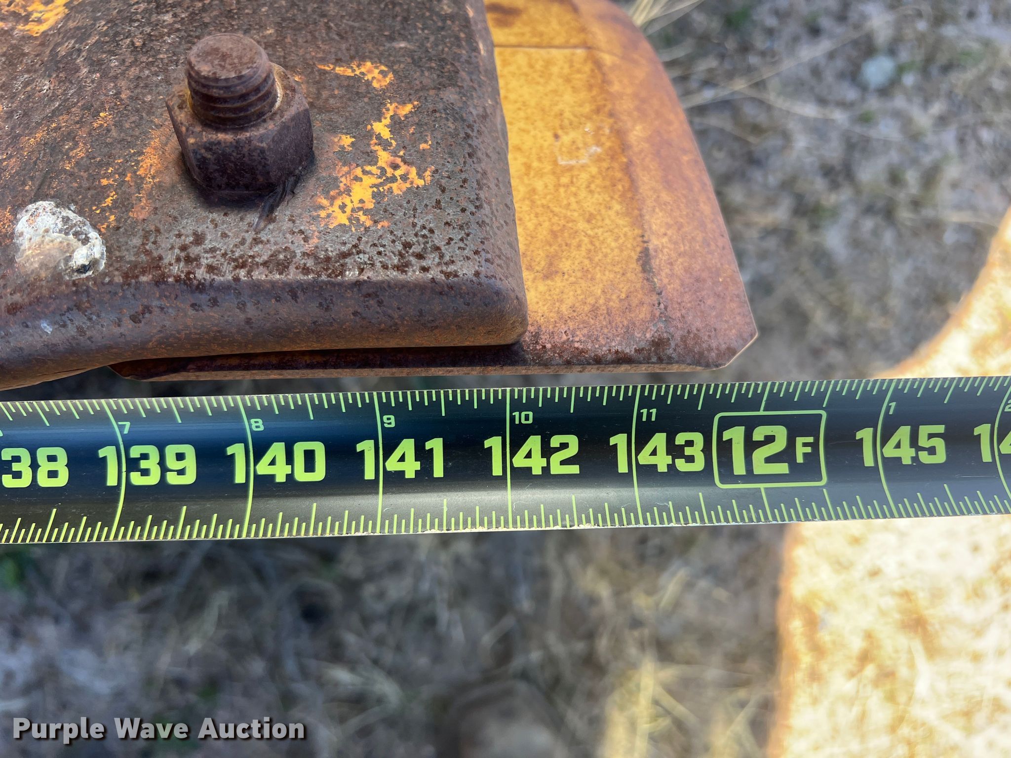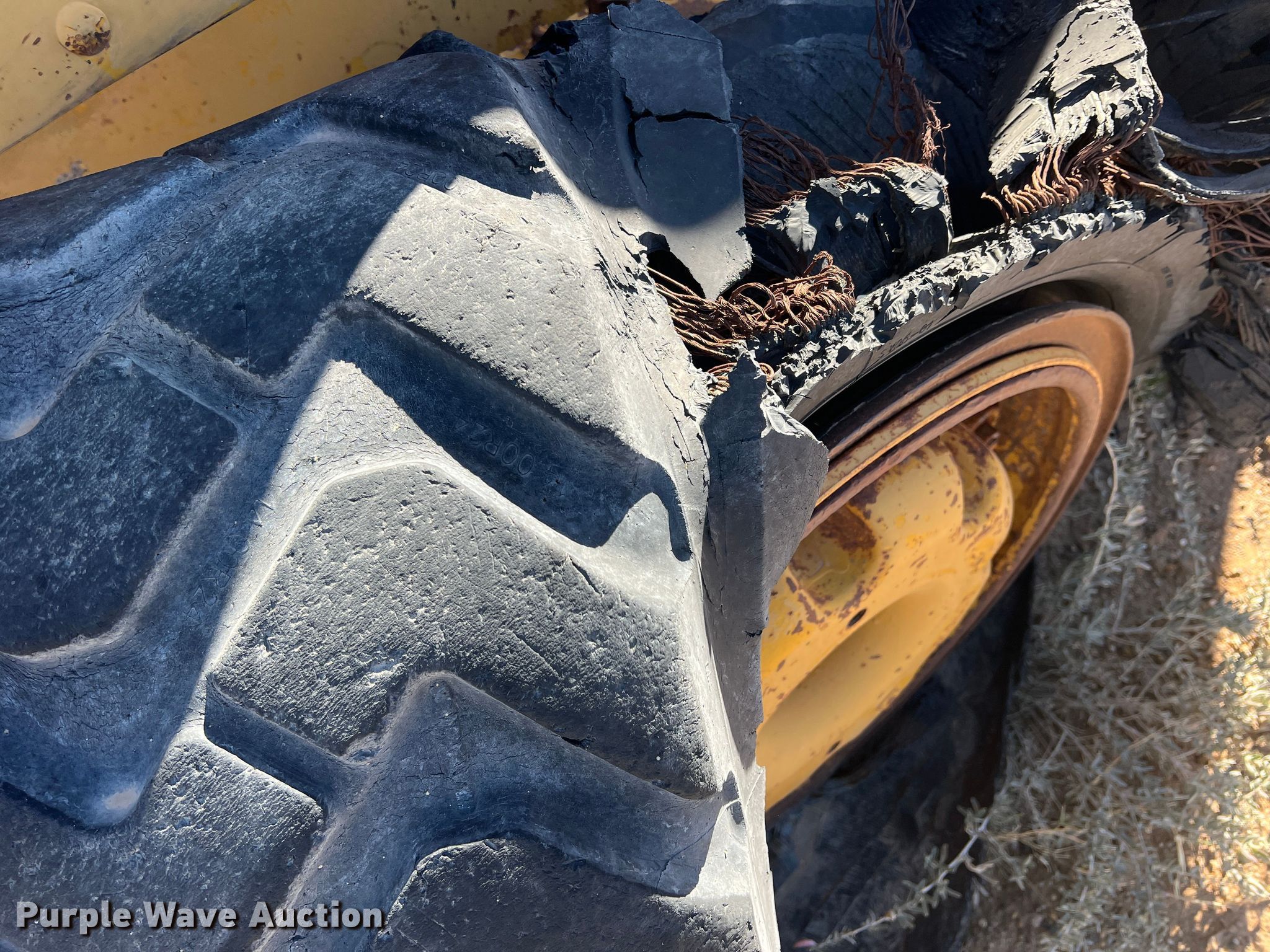 1972 Caterpillar 120 rigid frame motor grader. Hours: Unknown, Serial: 10R2156. Engine Cylinders: 6, Fuel type: Diesel. Transmission Direct-drive, 6F - 2R. Operators station Enclosed cab, Hydraulic control valves: 6. Features Moldboard total length: 12'. Tires Size: 14.00R24. Notes Glass cracked, Non-operational unit. Reeves County. 1384 West F Street. Pecos, TX 79772