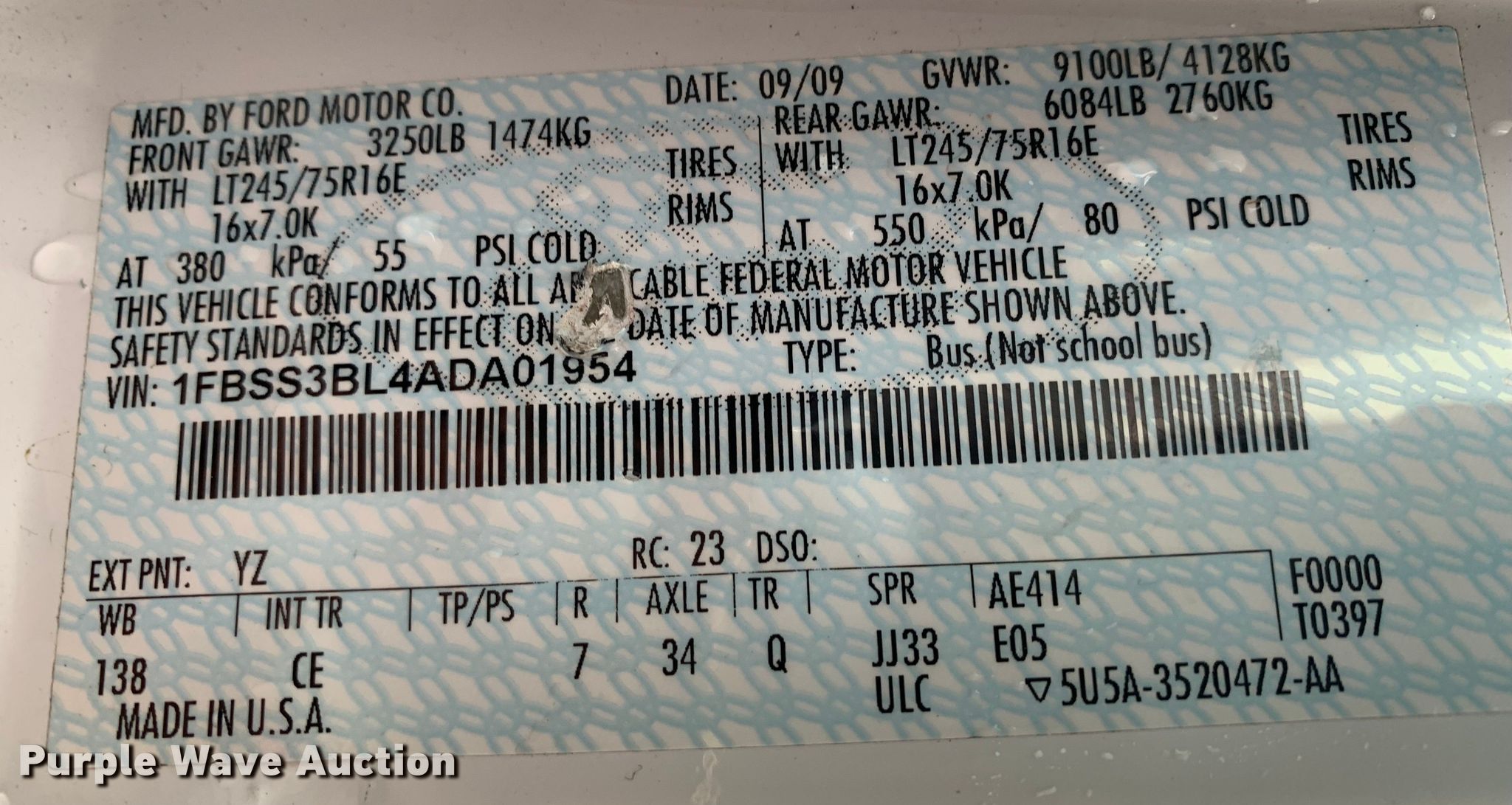 - VIN: 1FBSS3BL4ADA01954
