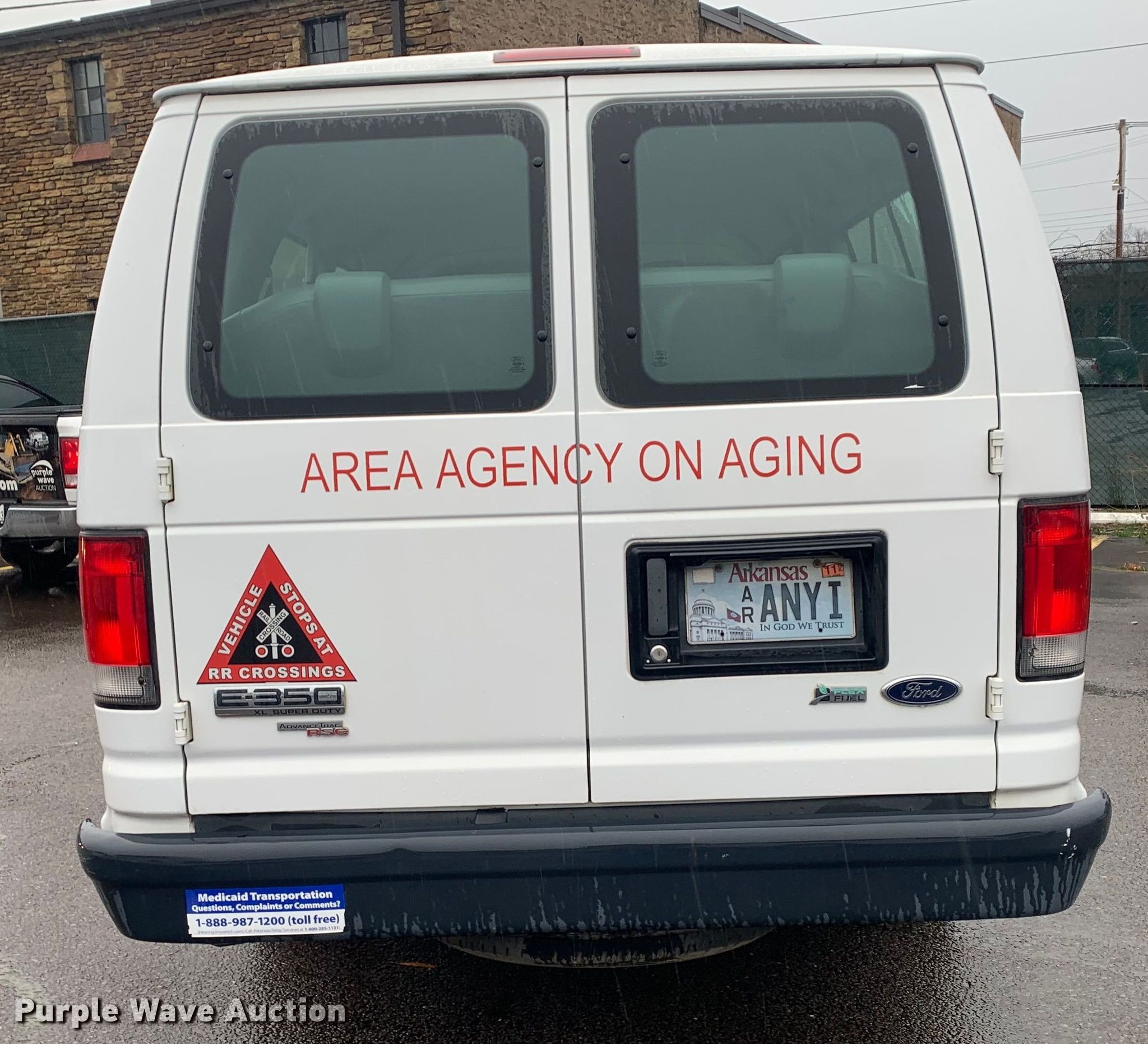 2013 Ford E350 Super Duty XL van. Miles: 224,009 on odometer, Miles or hours may vary, unit still in use, VIN: 1FBSS3BL1DDB33588. Engine Displacement: 5.4L V8 SOHC, Cylinders: 8, Fuel type: Gas. Transmission Automatic. Interior AC, Heat, Cruise control. Tires Size: LT245/75R16. Notes Dash warning indicator: TPMS, Windshield chipped or cracked, Dead battery. Arkansas title. Title distribution may be delayed up to 14 days from verification of funds. Area Agency on Aging of Western Arkansas, Inc.. 524 Garrison Ave. Fort Smith, AR 72901