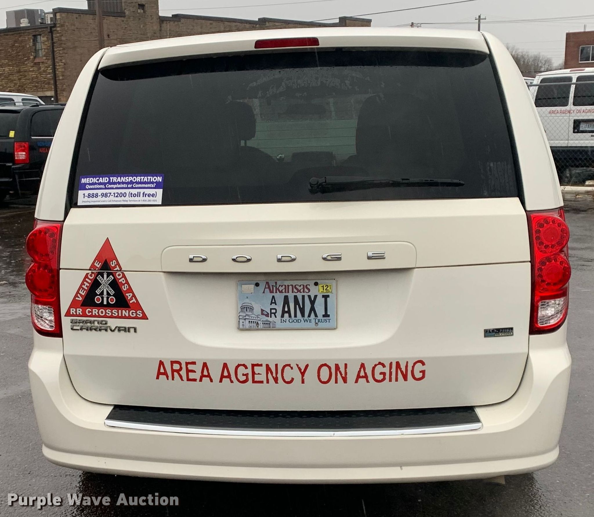 2013 Dodge Grand Caravan van. Miles: 265,134 on odometer, VIN: 2C4RDGBG9DR579872. Engine Displacement: 3.6L V6 DOHC, Cylinders: 6, Fuel type: Gas. Transmission Automatic. Interior AC, Heat, Heated mirrors, Cruise control. Tires Size: 225/60R17. Notes Dash warning indicator: TPMS. Arkansas title. Title distribution may be delayed up to 14 days from verification of funds. Area Agency on Aging of Western Arkansas, Inc.. 524 Garrison Ave. Fort Smith, AR 72901