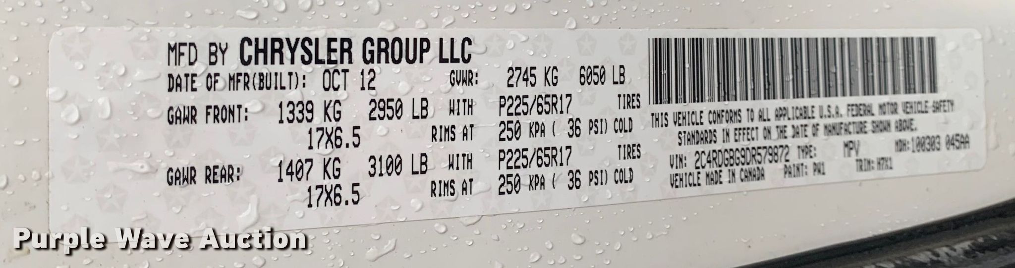 Purple Wave is selling a used Passenger Vehicle in Arkansas. This item is a 2013 Dodge Grand Caravan van with the following: Miles: 265,134 on odometer, VIN: 2C4RDGBG9DR579872