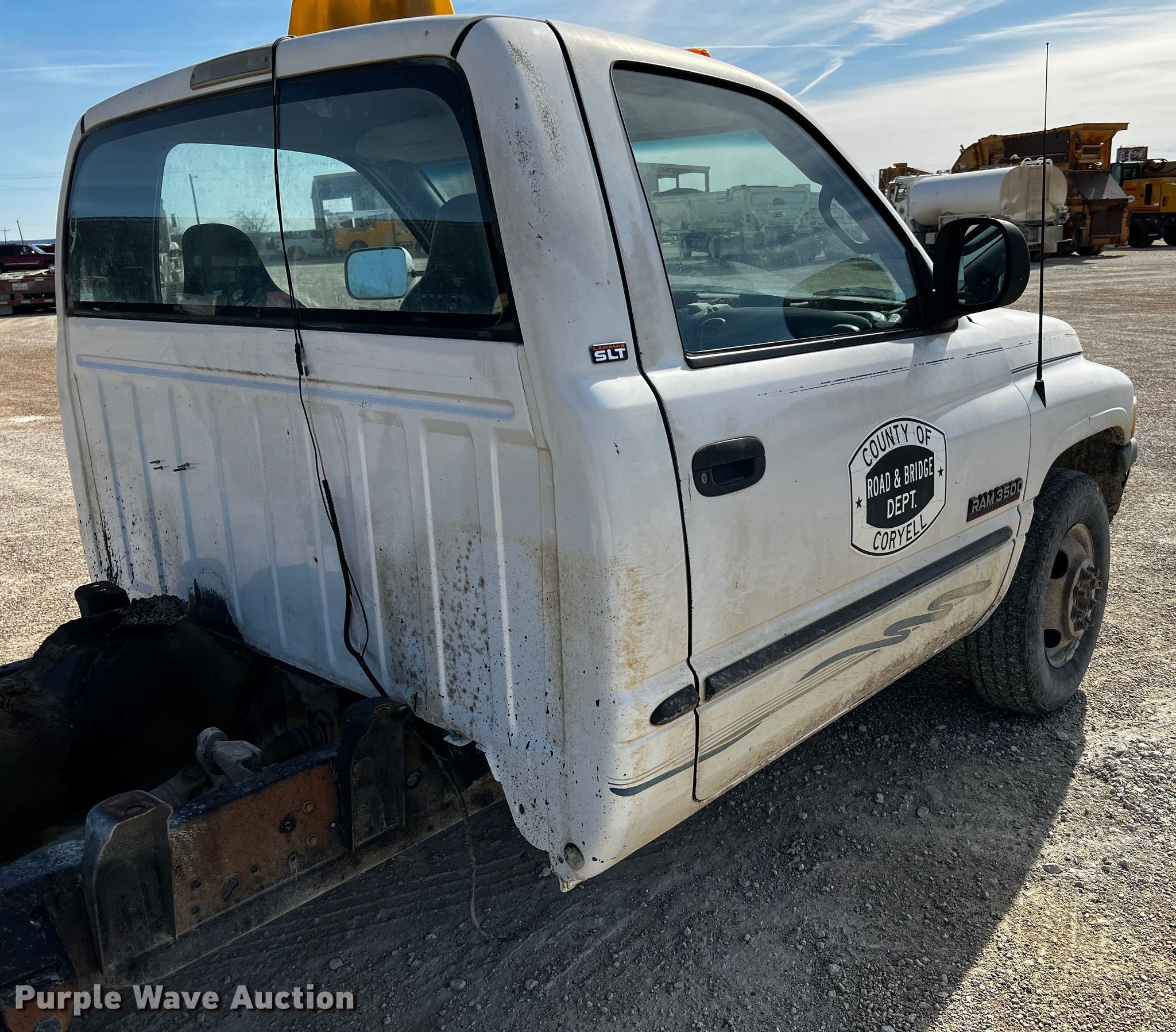 1998 Dodge Ram 3500 pickup truck cab and chassis. Miles: 155,978 on odometer, VIN: 3B7MC3668WM285297, Unit #: 9. Engine Displacement: 5.9L L6 OHV, Cylinders: 6, Fuel type: Diesel. Transmission Manual. Interior AC, Heat, Power windows, Power locks, Cruise control. Tires Size: 215/85R16. Notes Windshield chipped or cracked, Dash damaged, Parts may be missing. Texas title. Title distribution may be delayed up to 14 days from verification of funds. Coryell County Road and Bridge. 3701 W US 84. Gatesville, TX 76528
